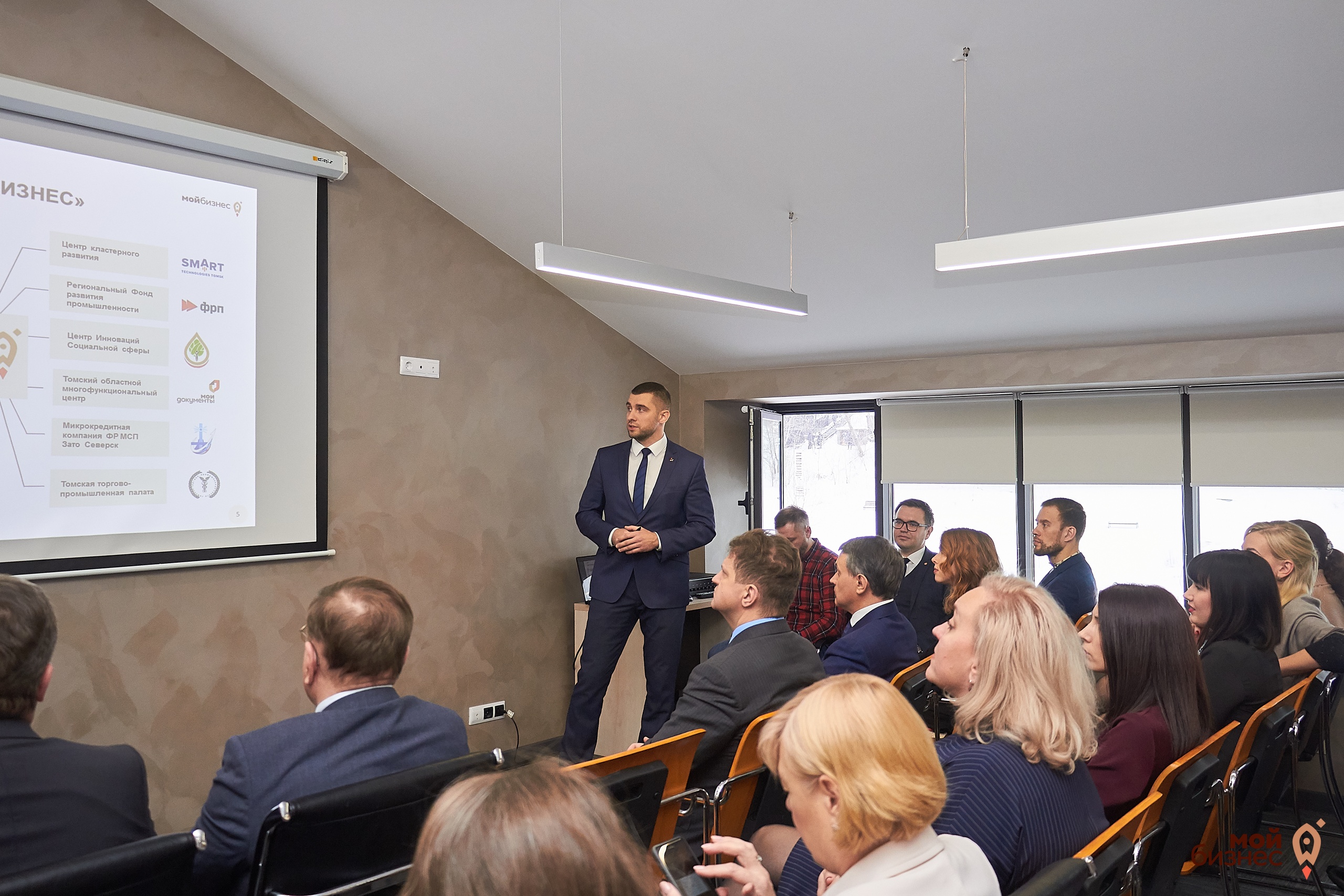 На территории центра под одной крышей разместились практически все организации инфраструктуры томского предпринимательства — «Фонда развития бизнеса» Томской области, Центра кластерного развития, региональной микрофинансовой организации, Гарантийного фонда, Инжинирингового центра, городского центра поддержки малого и среднего бизнеса, многофункциональный центр, торгово-промышленная палата региона, а также уполномоченный по защите прав предпринимателей.