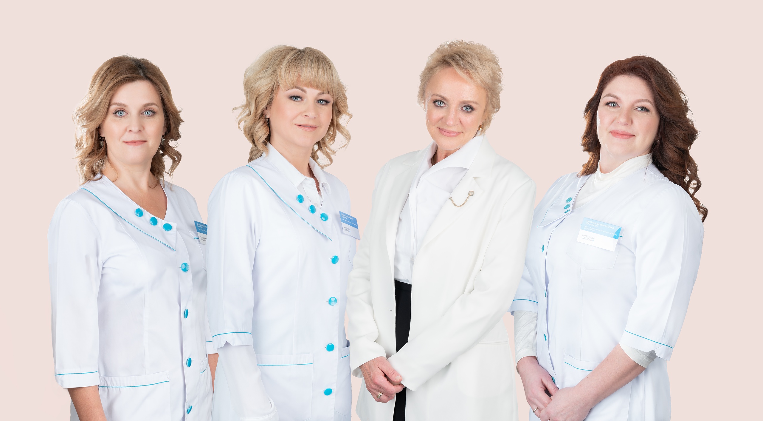 Наталья Михайловна Пасман (вторая справа), профессор доктор медицинских наук, заслуженный врач РФ, акушер-гинеколог с более чем 40-летним стажем, основатель «Клиники Пасман», и команда опытных репродуктологов клиники