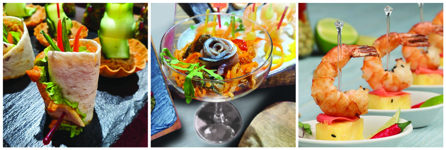 Легкие закуски из морепродуктов оценит женская половина ваших гостей. Крупные креветки и мидии просто созданы для канапе на шпажках. Сочетайте их с кусочками сыра, помидорками-черри, маслинами и крупными виноградинами. А кальмар станет прекрасной основой легкого салата-коктейля.