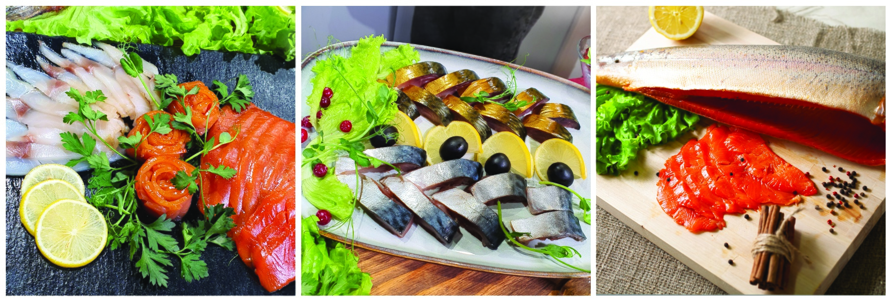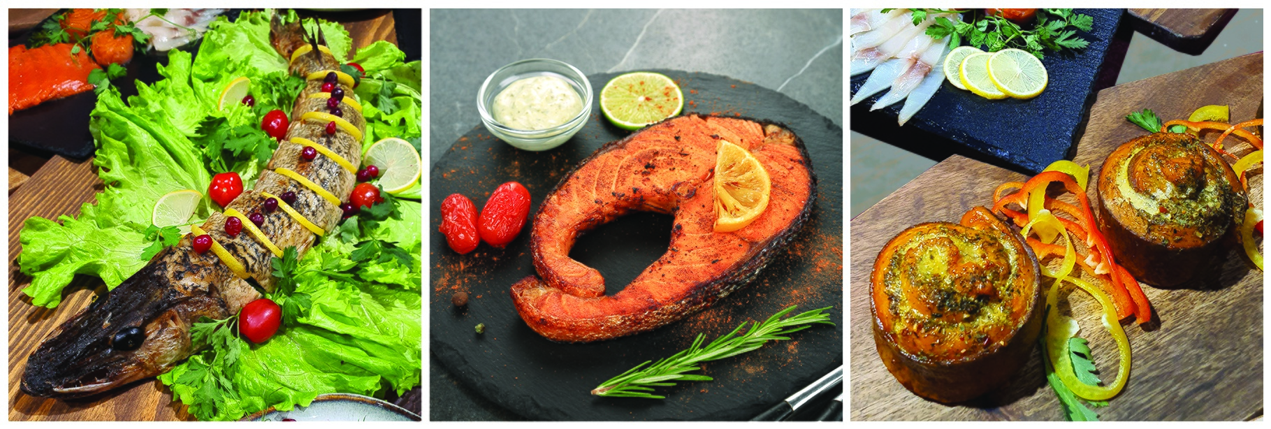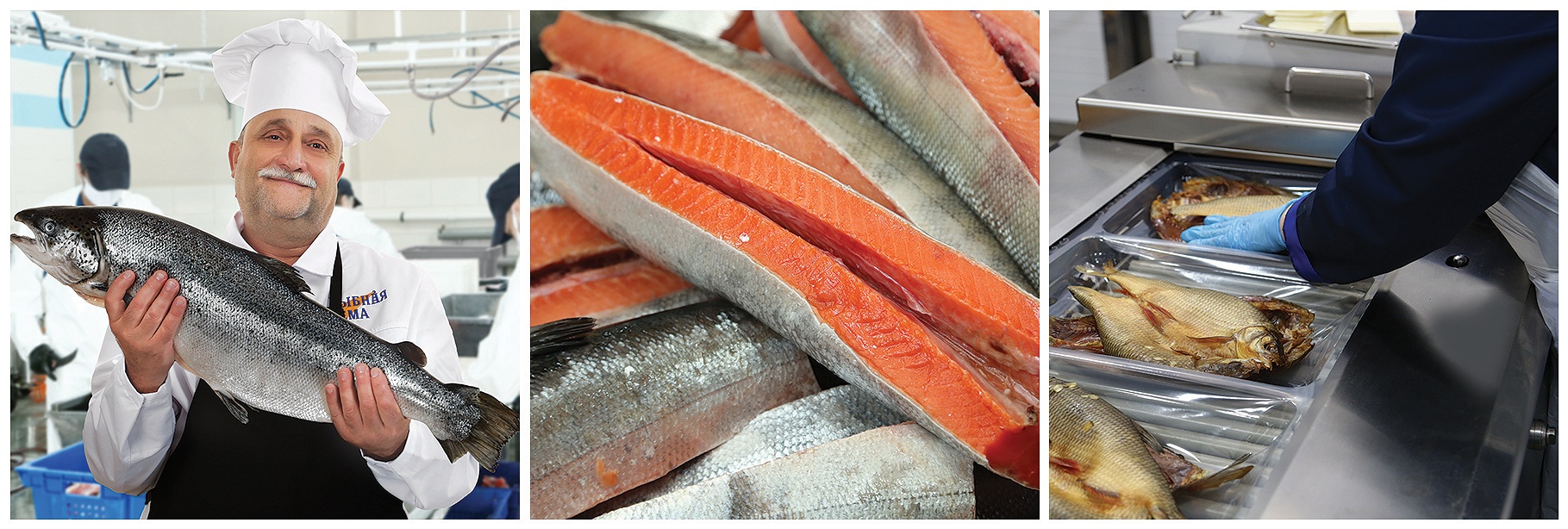 «Рыбная тема» выпускает и другие праздничные полуфабрикаты: фишроллы — лососевые рулеты с сыром и ароматными специями; кальмары, фаршированные сочной сливочной начинкой из сыра, зелени и кеты. Если у вас есть свой любимый рецепт приготовления рыбы, вы можете купить в магазинах завода дорадо, нерку и другие деликатесные сорта в замороженном виде. Некоторые из них (палтуса, форель, семгу) — не тушками, а в виде порционных стейков, удобных для запекания на гриле или в духовке.