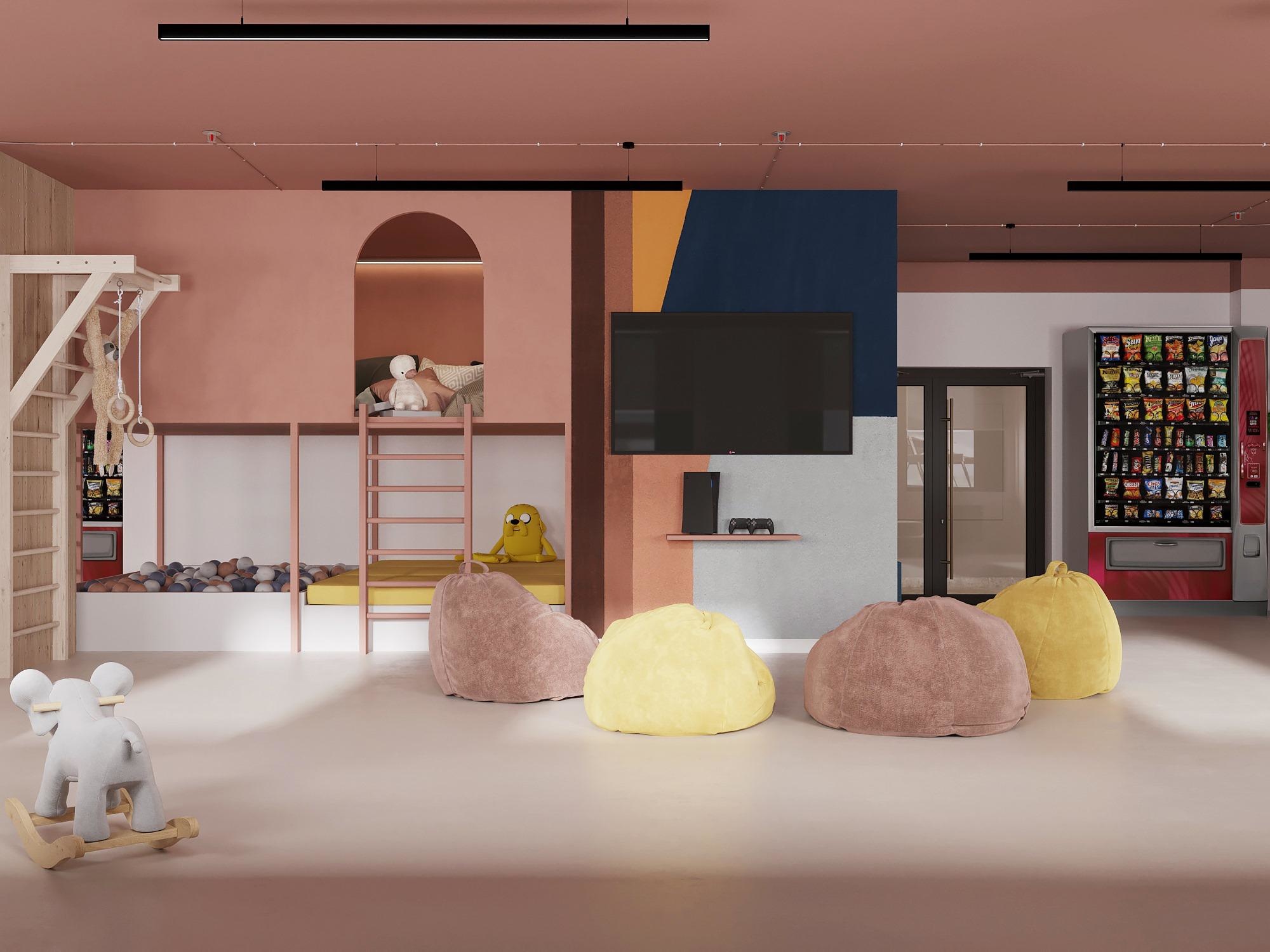 Одно из помещений комплекса отведено под детский клуб. Сюда семейные владельцы пентхауса всегда могут привести своих детей для проведения праздника или оставить на время, пока сами занимаются спортом.