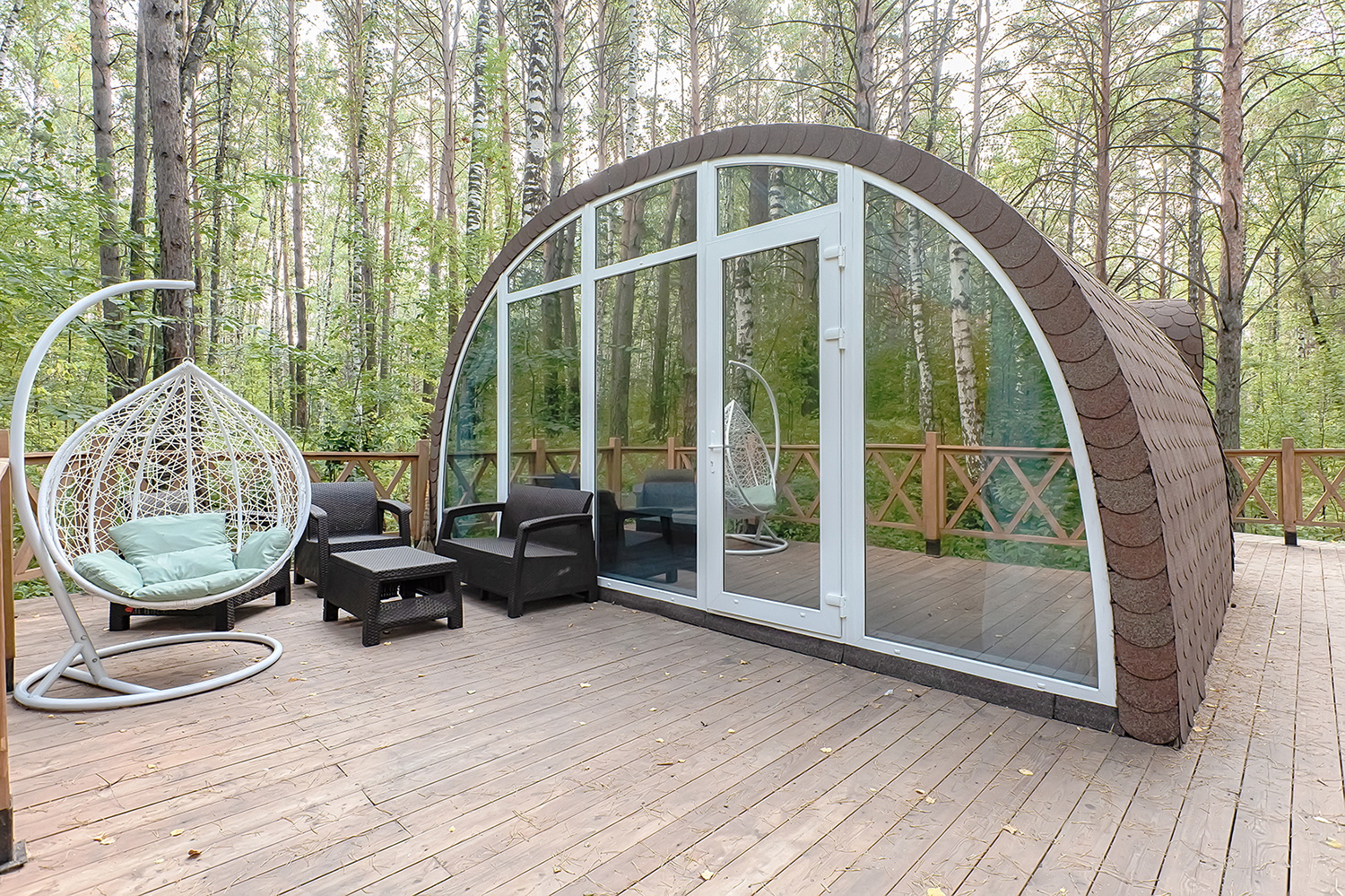 - четыре огромные купели с хвойными ароматами и панорамным видом на лес;