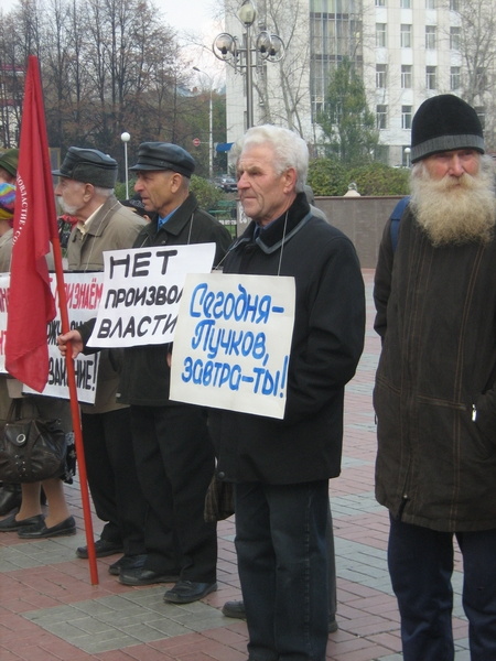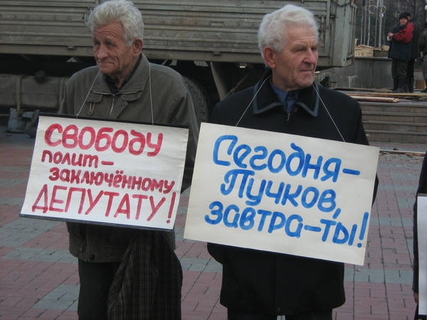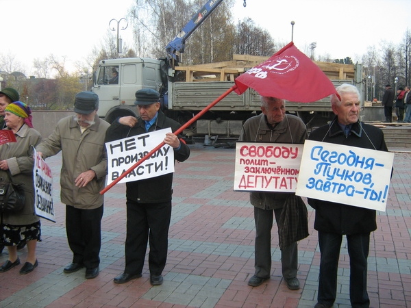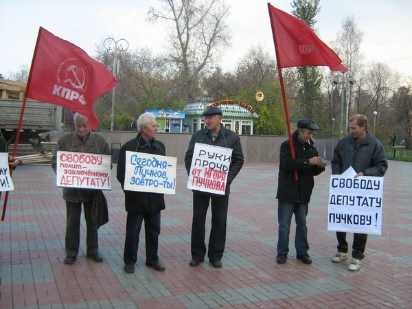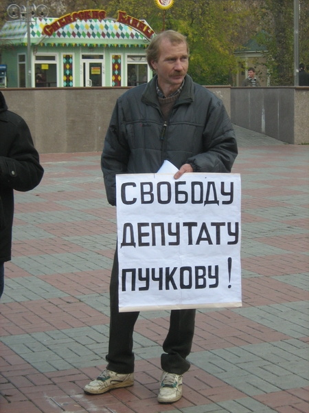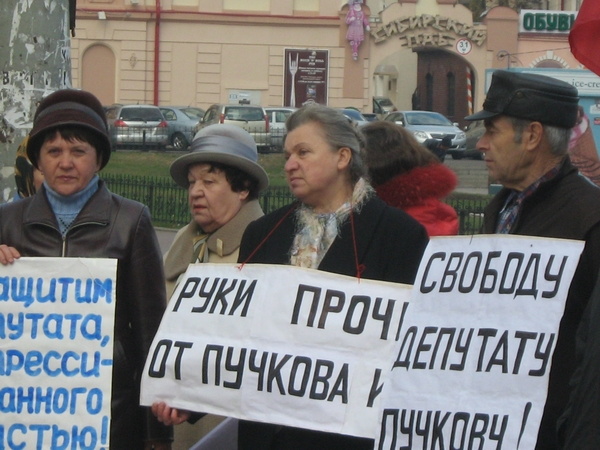 В рядах пикетирующих можно было увидеть и депутата гордумы Льва Пичурина. Именно он попытался пролить свет на арест Игоря Пучкова в своем материале «Пучков, с сильным не борись, с богатым не судись!», опубликованном на нашем портале накануне. Он отметил, что суд по делу Пучкова продолжался более восьми часов, и в решении районного суда по жалобе на постановление об аресте Пучков не был ни разу назван депутатом районной думы. Не был назван и тот факт, что он является членом КПРФ.