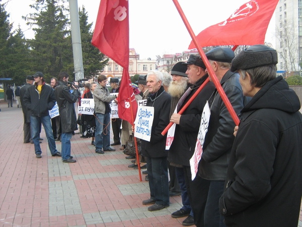 Сегодня представители томского обкома КПРФ провели первый пикет из серии акций протеста, запланированных до конца недели. Таким способом коммунисты решили поддержать депутата думы Томского района Игоря Пучкова, который сейчас отбывает в тюрьме 15 суток по решению мирового суда за организацию блокирования федеральной трассы Томск-Новосибирск жителями Кафтанчиково.