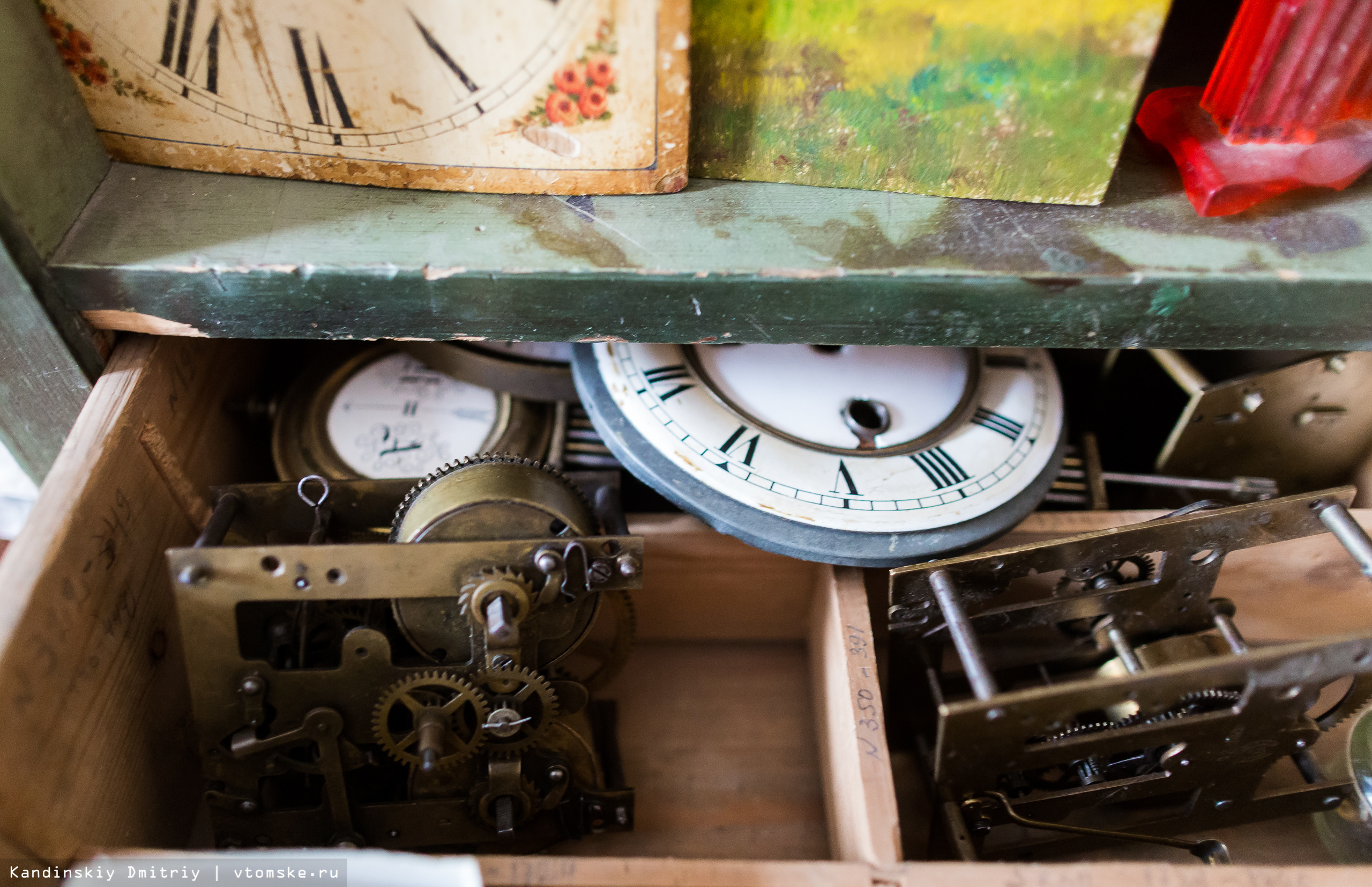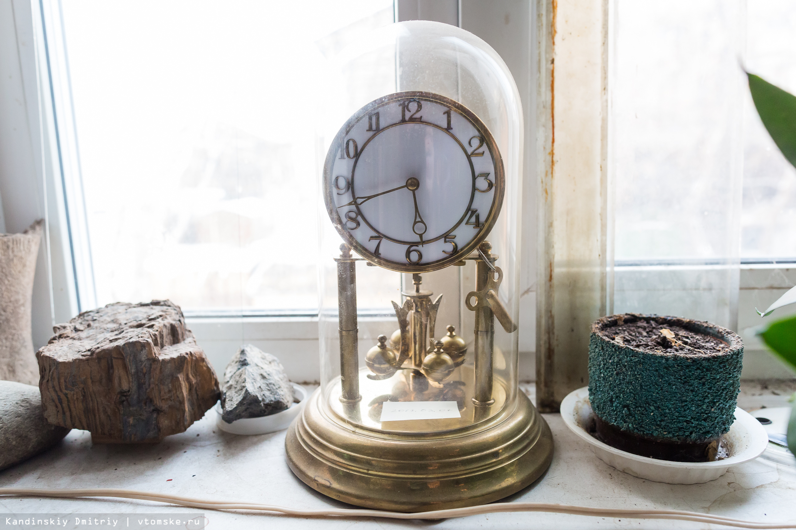 Рабочая комната Владимира Фадеева находится на втором этаже старого двухэтажного здания краеведческого музея. Вообще, здесь располагается несколько мастерских. Но эта отличается от остальных большим количеством старинных часов. Одновременно ход времени тут отсчитывают несколько десятков больших и маленьких стрелок.