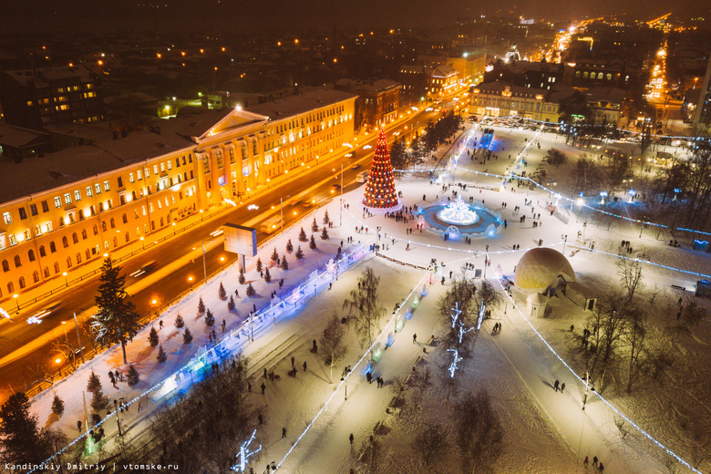 Декабрь. Новогодние огни зажглись на площади Новособорной. Фото: Дмитрий Кандинский / vtomske.ru