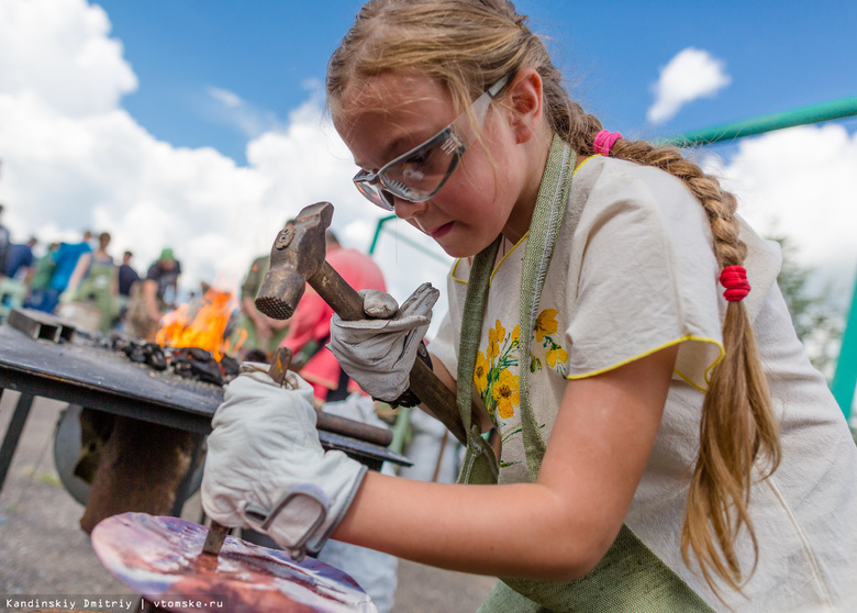 Июнь. Девочка на фестивале «Праздник кузнеца» показала томичам, как нужно ковать металл. Фото: Дмитрий Кандинский / vtomske.ru