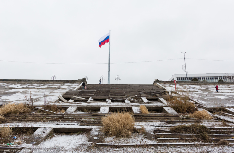 Ноябрь. Флагшток установили на набережной Томи. Фото: Дмитрий Кандинский / vtomske.ru