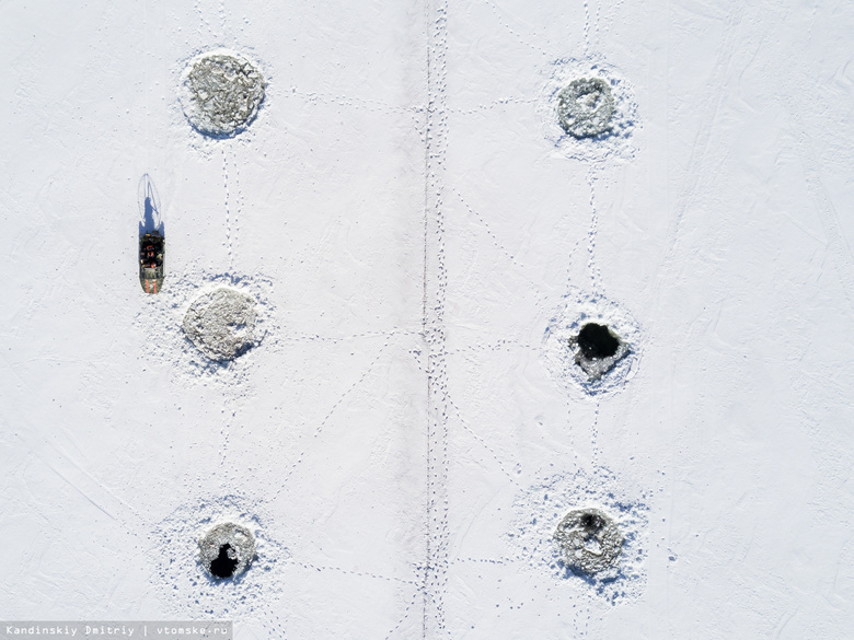 Март. Специалисты взрывают лед на Томи. Фото: Дмитрий Кандинский / vtomske.ru
