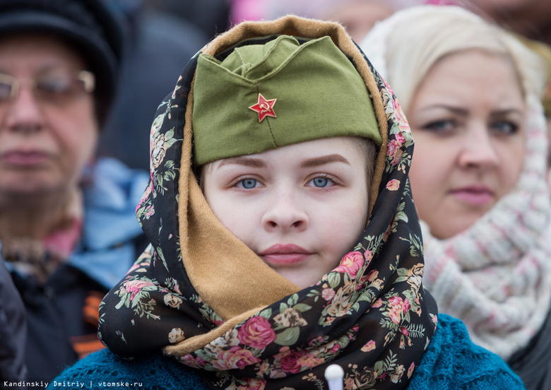 Май. Девочка наблюдает за шествием в День Победы. Фото: Дмитрий Кандинский / vtomske.ru
