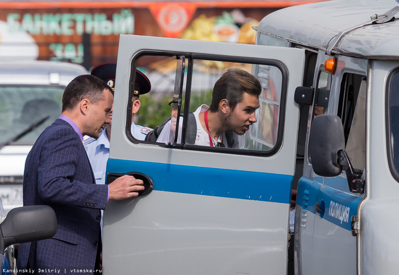 Август: Полиция задержала сторонников Навального, установивших агитационный куб. Фото: Дмитрий Кандинский / vtomske.ru