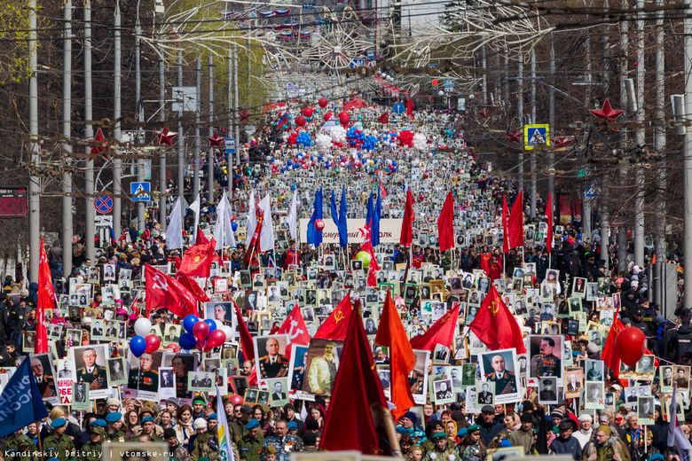 Май. Колонна «Бессмертного полка» идет по проспекту Ленина в День Победы. Фото: Дмитрий Кандинский / vtomske.ru