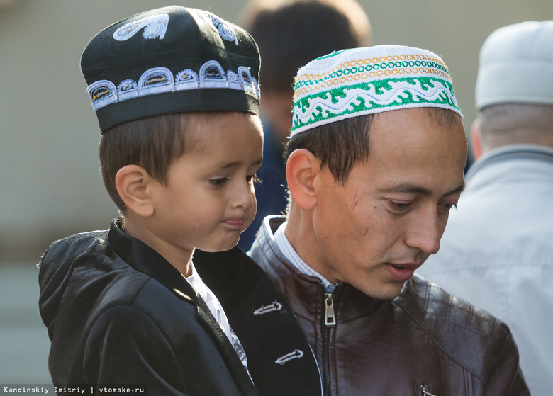 Сентябрь. Отец с сыном пришли в мечеть на праздник Курбан-байрам. Фото: Дмитрий Кандинский / vtomske.ru