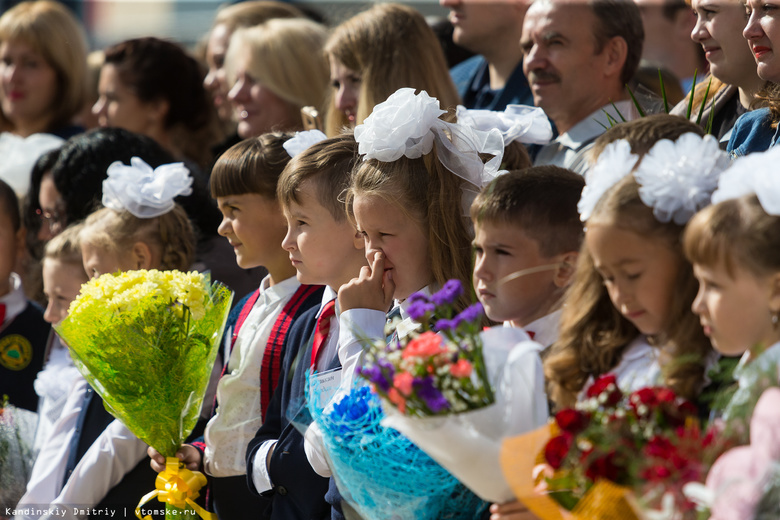 Сентябрь. Первоклассники стоят на линейке в честь Дня знаний. Фото: Дмитрий Кандинский / vtomske.ru