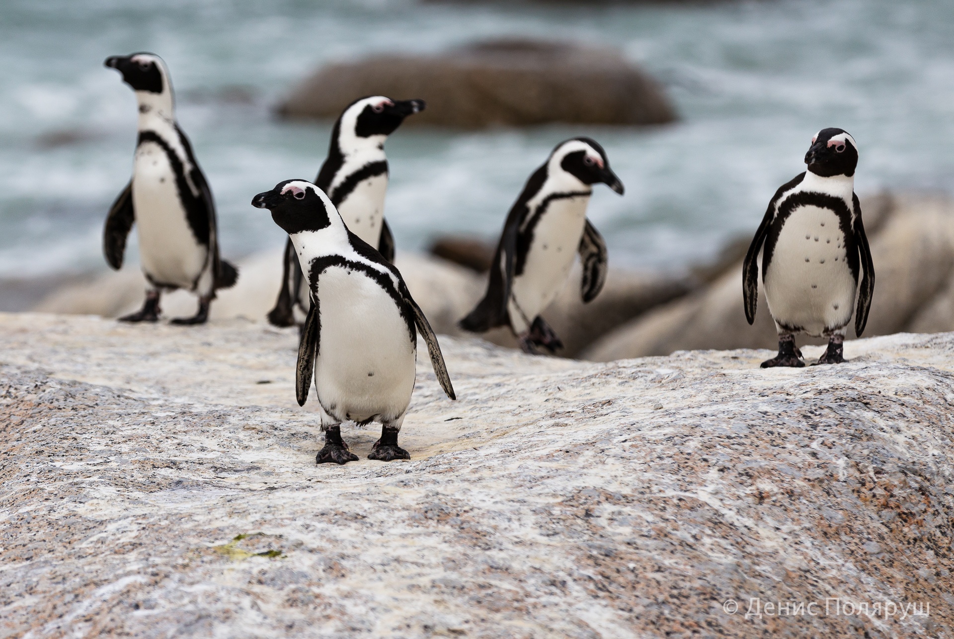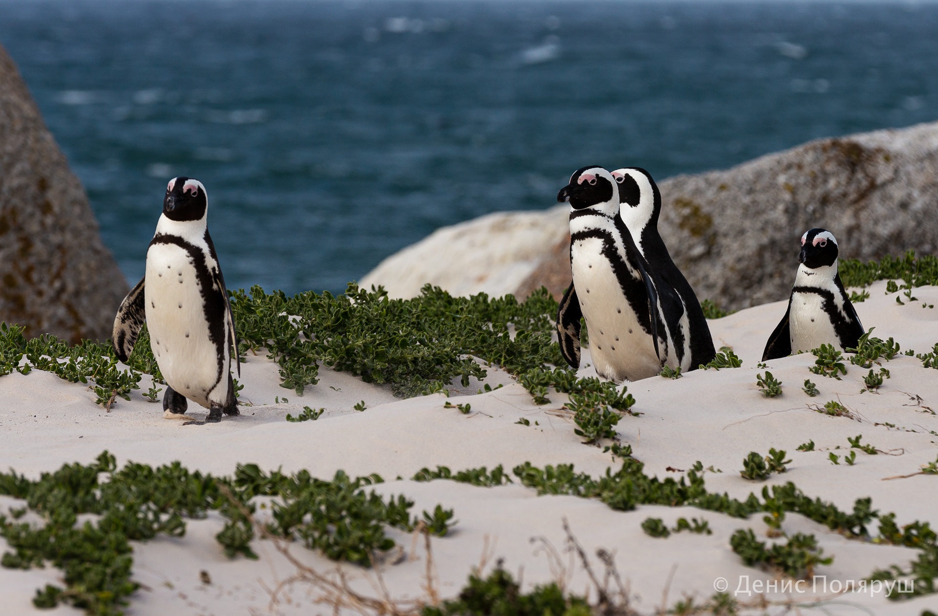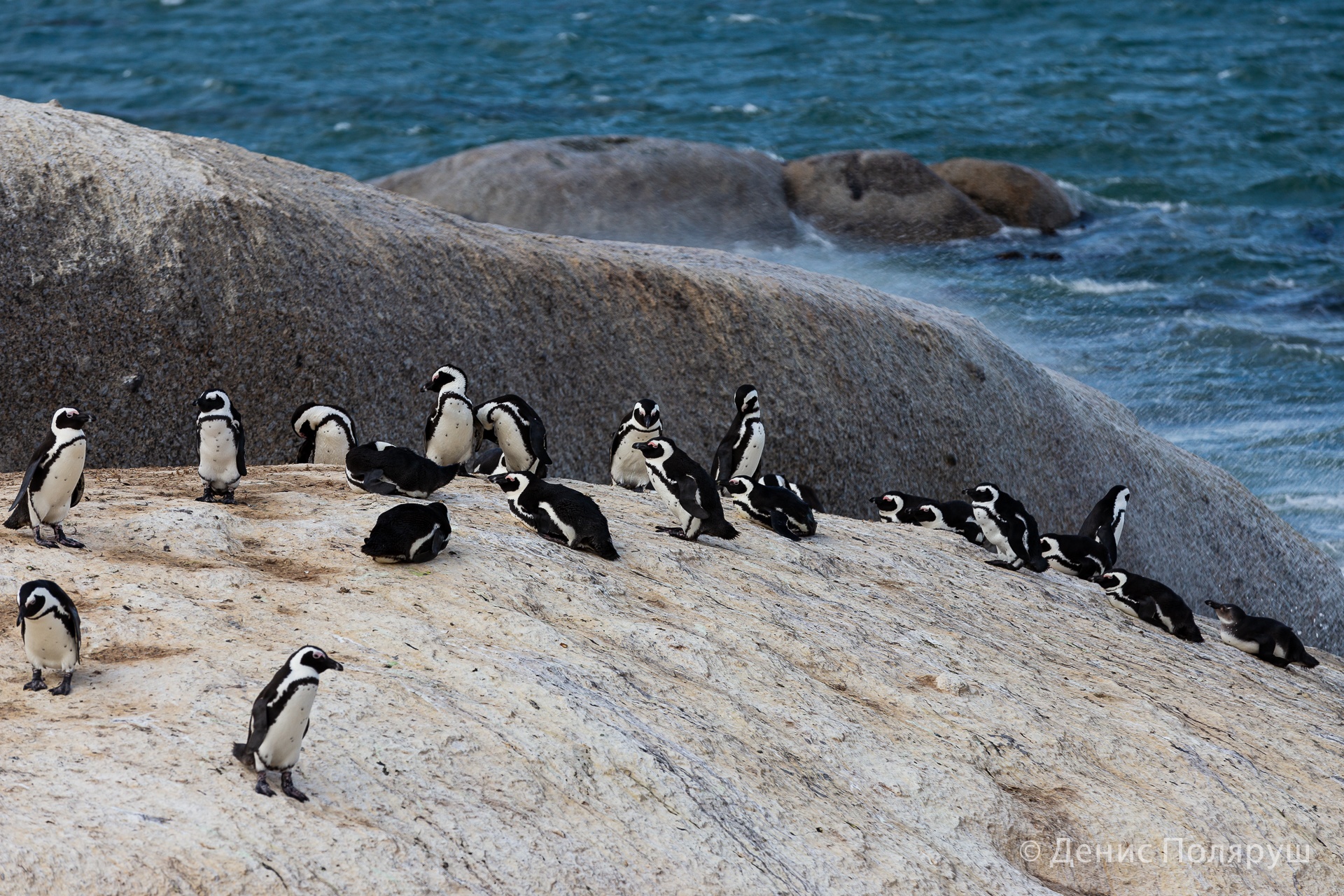 Заехали путешественники и на пингвиний пляж — Боулдерс-Бич. Он находится в 40 минутах езды на машине от Кейптауна, возле маленького городка Саймонс-таун. Живет колония пингвинов в маленькой лазурной лагуне. За туристами тут смотрят рейнджеры: они следят за порядком и покоем пингвинов. Подходить близко можно, но лучше не трогать — пингвин может и укусить.