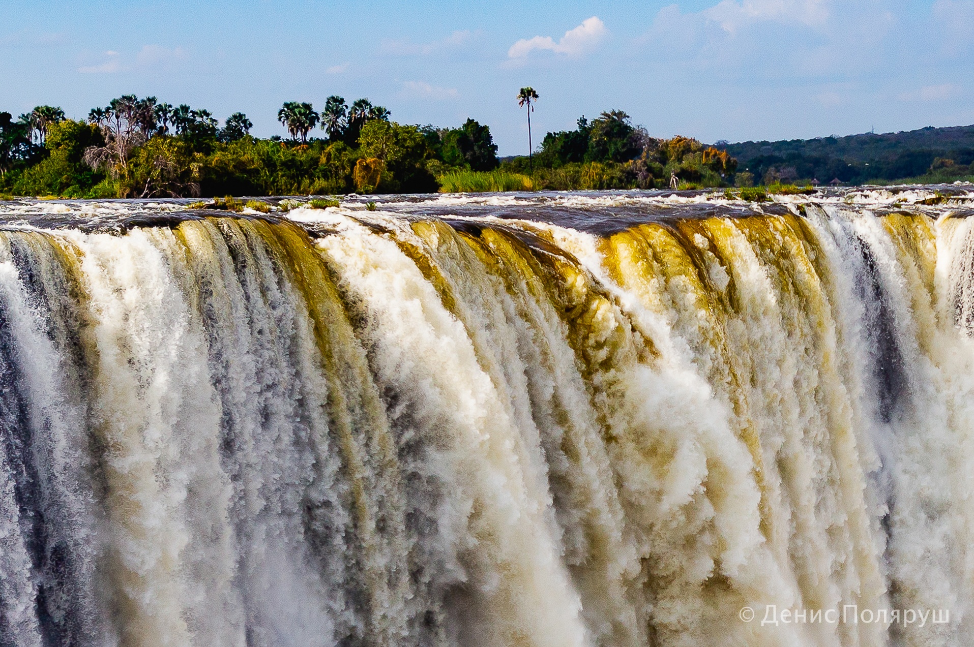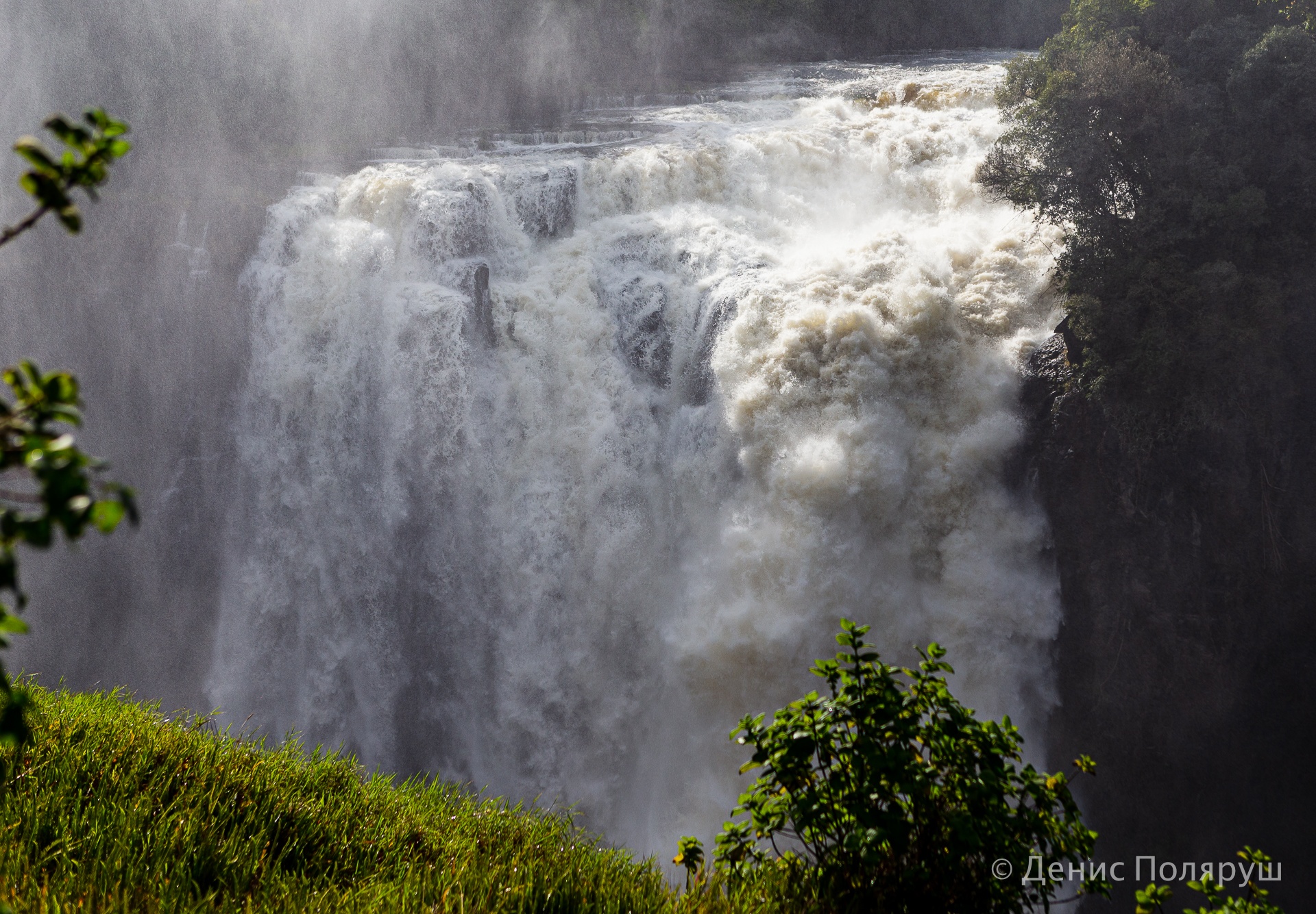 — Стоишь сверху и кажется, что дождь идет — кругом стоит водяная пыль. Брызги и туман могут подниматься на высоту 400 метров и выше. Чем дальше идешь по тропе, тем шире становятся участки, где показывается водопад. Его общая ширина — около двух километров. Максимальная высота падения воды — порядка 110 метров.