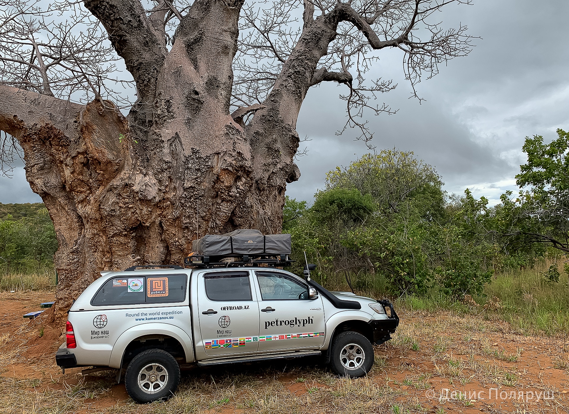 — Из Замбии мы поехали в Зимбаве. По пути в столицу, Хараре, вдоль дороги нам встретилось множество баобабов. Диаметр ствола каждого — в длину машины, вспоминает Денис. — Столица выглядит прилично, особо внимание на тебя никто не обращает, пальцем не тыкает. Были в кафе, играла живая музыка, все нас радушно приветствовали.