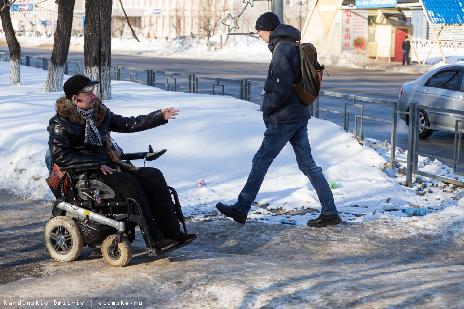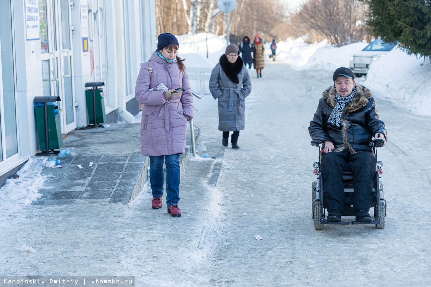 По данным сайта администрации города, в Томской области проживает 61 тысяча людей с инвалидностью, 45 % из них — в Томске. С 2013 года в городе появилось бесплатное социальное такси — две машины, оборудованные для перевозки маломобильных людей. В месяц положено восемь поездок, туда-обратно считается за две, то есть по факту — четыре. Возят только в пределах города и только с 07:00 до 19:00.