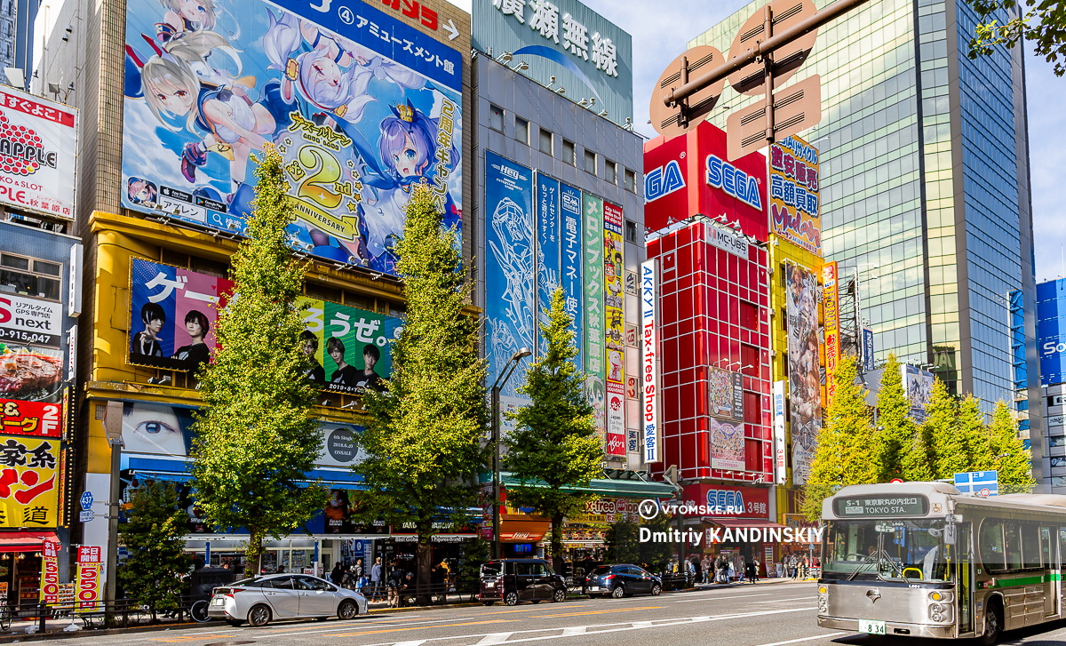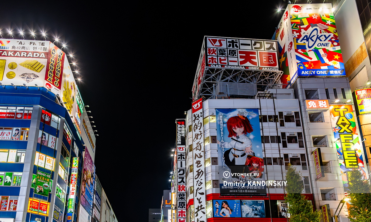 Район Акихабара обязателен для посещения, чтобы познакомиться с «той самой Японией» — где под аниме и игровые автоматы выделены целые здания, есть магазины с любой электроникой, множество необычных кафе и ярких неоновых вывесок.