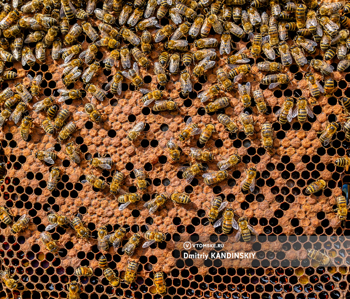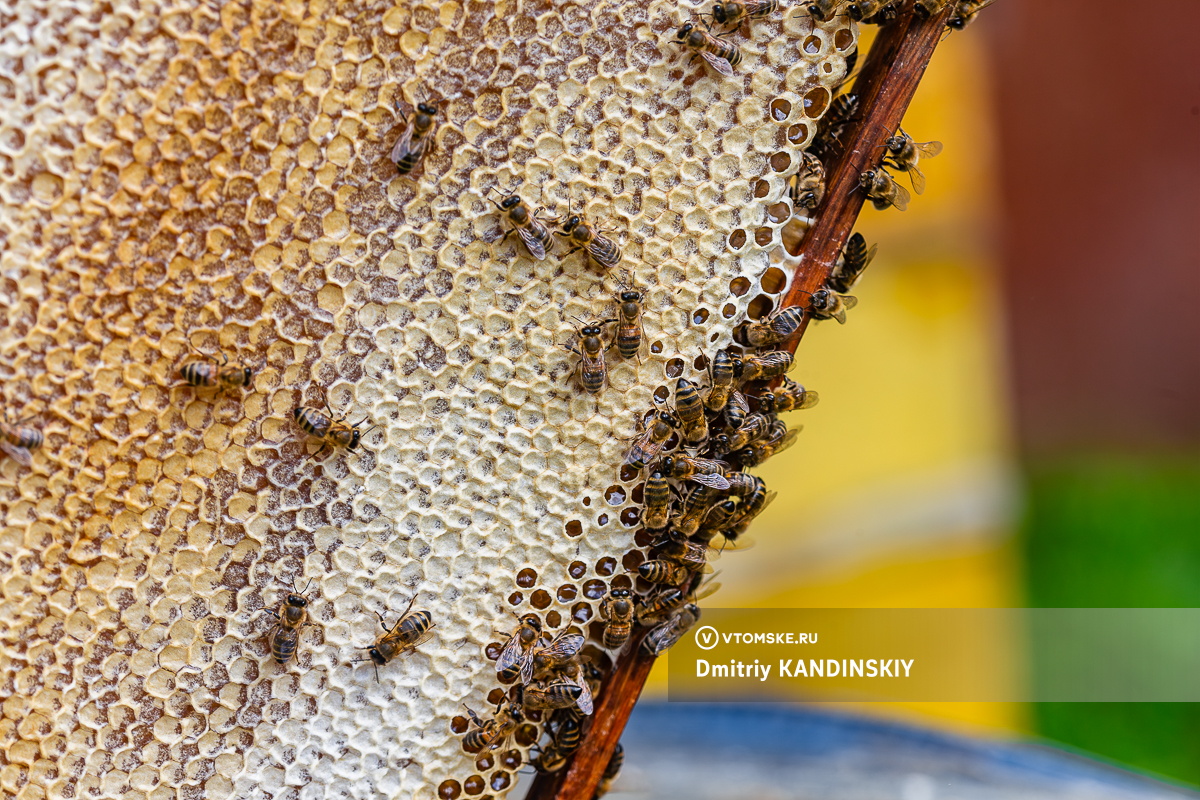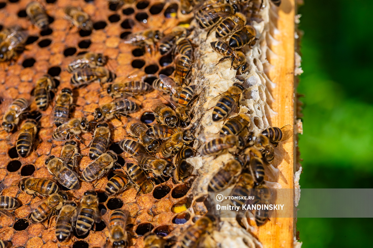 Соты, которые пчелы используют для хранения меда, пыльцы и воспитания потомства, создаются из пчелиного воска. Пасечники немного помогают пчелам: весной устанавливают в ульи рамки с вощиной. Это тонкие листы воска, которые уже имеют отпечатанный узор шестиугольных ячеек, имитирующий естественные соты. Вощина становится фундаментом, на котором пчелы начинаются возводить стены. Когда соты готовы, они отправляются за нектаром.