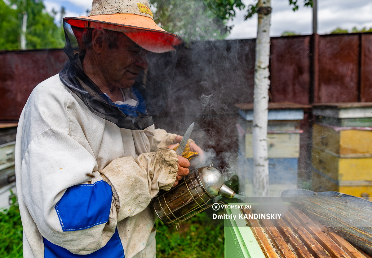 Когда сота наполнилась медом, ее необходимо достать из улья и поставить в медогонку для сбора сладкого продукта. Чтобы залезть в улей и не пострадать от укусов, пасечники используют дымарь. Это специальное устройство для окуривания пчел дымом.