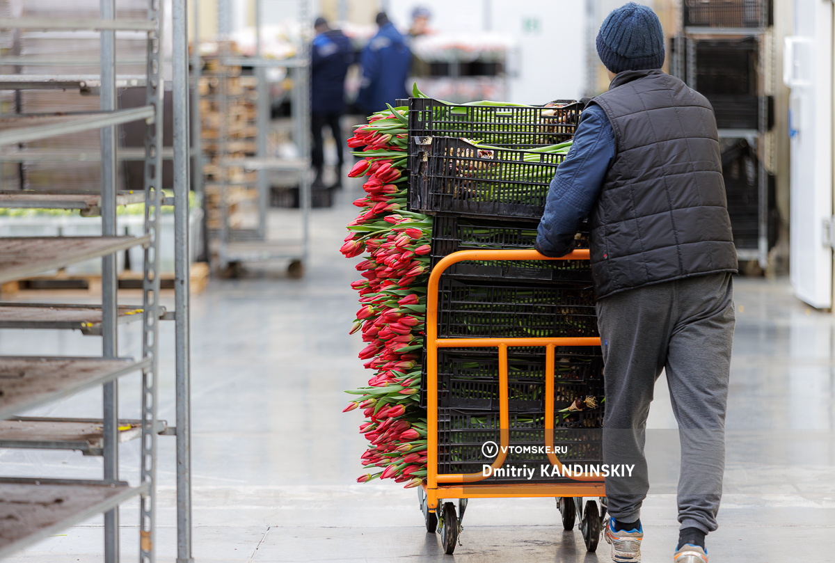 Собирать тюльпаны начинают в середине февраля и заканчивают ближе к 8 марта. Снимают цветы по-разному: в одних случаях бутоны могут быть еще совсем закрытые, зеленые, тогда тюльпаны успеют доехать до сильно удаленных от Томска регионов. В других случаях цветы снимают с уже созревшими бутонами, но еще не раскрывшимися.