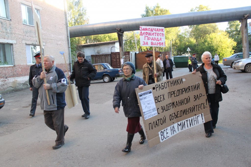 Тем временем участники акции отправились на улицу Железнодорожную, где начался митинг. Его открыла представитель инициативной группы заводчан Галина Смирнова. По ее мнению, выдача матпомощи в день акции — запланированное мероприятие, призванное отвлечь рабочих от протеста.