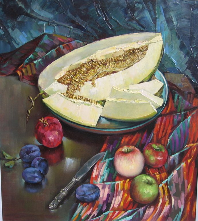 Светлана Панаркина известна как автор необычных натюрмортов, которые есть почти в каждом художественном салоне города. Не обошлось без «фирменных» работ и в этот раз. На картинах художницы можно встретить не только нежные цветы, каждый лепесток которых выписан объемно и реалистично, но и… лопухи.