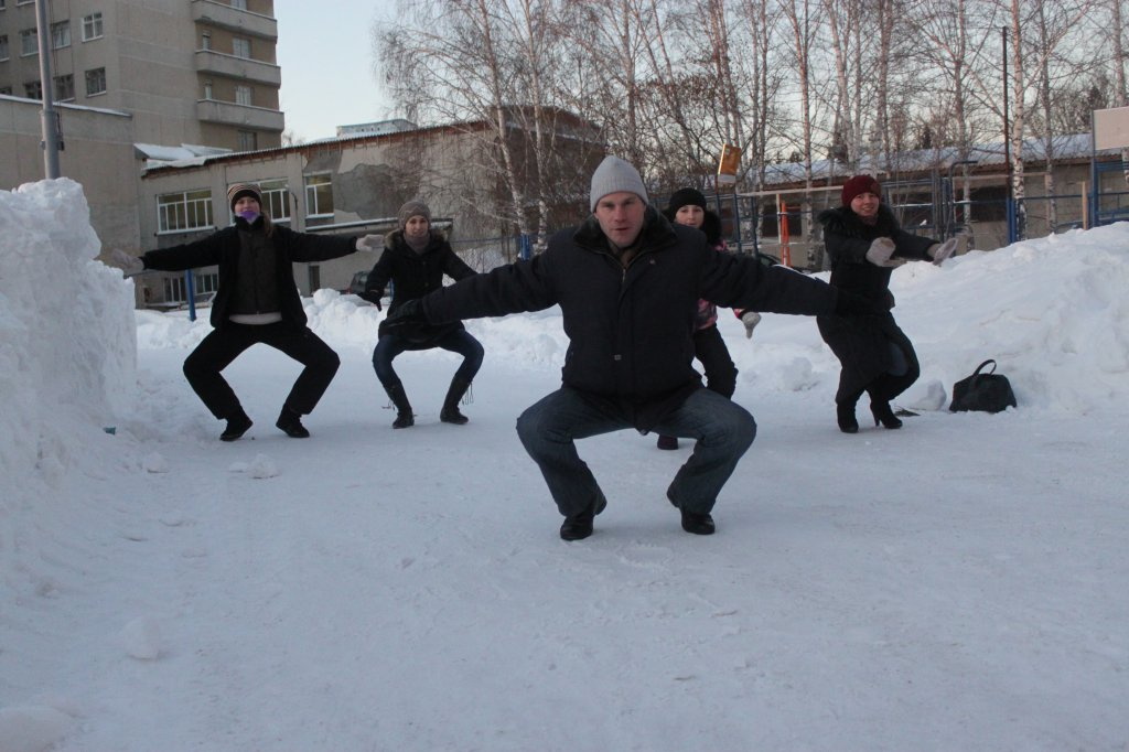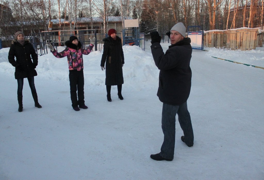 Сегодня, на первом томском занятии по зимней гимнастике, было всего пять человек. Девушки пришли на каток, но не отказались поучаствовать и в оздоровительном мероприятии. В следующий четверг они также пообещали прийти и привести подруг. Владимир в свою очередь пообещал устроить после тренировки чаепитие.