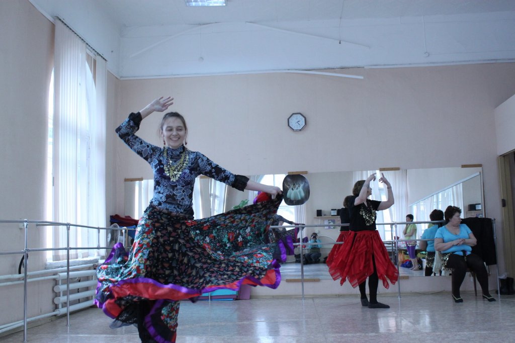 Особенно заметна в группе стройная изящная женщина в широкой цветастой юбке. Специально для «одногруппниц» она продемонстрировала свой коронный цыганский танец.