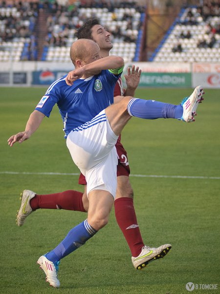 Вторую половину встречи активнее начала «Томь», сумевшая в дебюте тайма прижать гостей к собственным воротам и пару раз потревожить откровенно скучавшего в первые сорок пять минут Сергея Рыжикова. Ударом отметился Евгений Савин, чуть-чуть не хватило в завершении атаки Канунникову. Самым же толковым оказался выстрел с угла штрафной в исполненнии активного Дениса Бояринцева. К слову, новый капитан томского клуба на протяжении всего матча, вплоть до замены на 57-й минуте, был самой полезной фигурой на поле. Замена Бояринцева стала, на мой взгляд, первой тренерской ошибкой Передни. Ну, а в том моменте в начале тайма, голкипер «Рубина» выбрал правильную позицию и мяч после удара Дениса забрал.