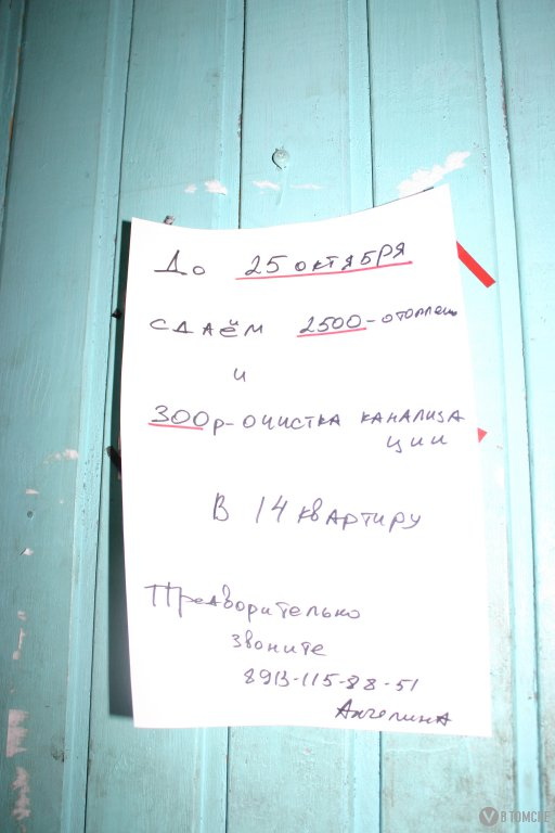 Как оказалось, к теплоснабжению дом не подключен — в здании своя кочегарка, в цокольном этаже. Вопреки всем СНиПам и пожарным требованиям. На покупку отопительного котла, вышедшего из строя через два года после постройки дома, жителям пришлось скидываться. Скидываются на закупку угля и дров — «склад» для котельной устроен тут же во дворе, под открытым небом у стены дома. Скидываются на зарплату кочегарам, которые «топят то хорошо, то плохо». Жильцы охотно рассказывают и про кочегаров, которых приходится искать каждый сезон, и про канализацию, которую приходится прочищать самостоятельно, и про отсутствие горячего водоснабжения — бойлеры для подогрева расположены в той же котельной, но работают через раз. Представить, какие суммы приходится платить жильцам по статье ОДН за электричество, несложно. А стоимость отопления обозначена тут же на двери — 2 500 рублей с комнаты в 18 «квадратов» в месяц. Это за октябрь. В зимние месяцы плата составляет 3 500 и выше. Понятно, что ни одна УК принимать подобное строение на обслуживание не соглашается. И остается только гадать, что будет с домом и жителями всех 18 квартир еще через пару лет, когда потребуется ремонт крыши, коммуникаций и расползающегося фундамента.