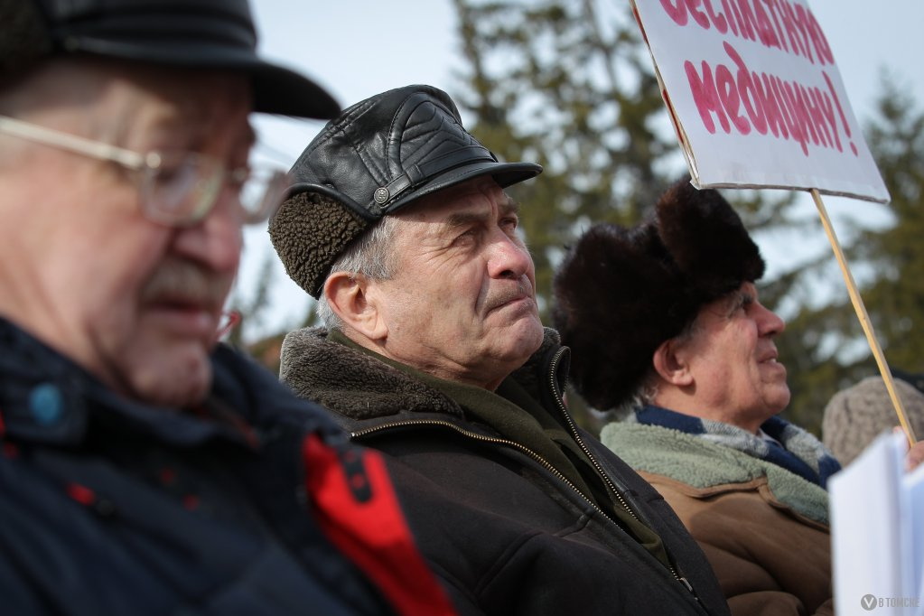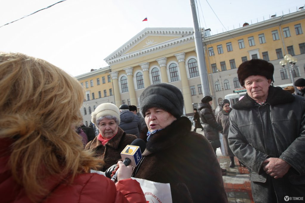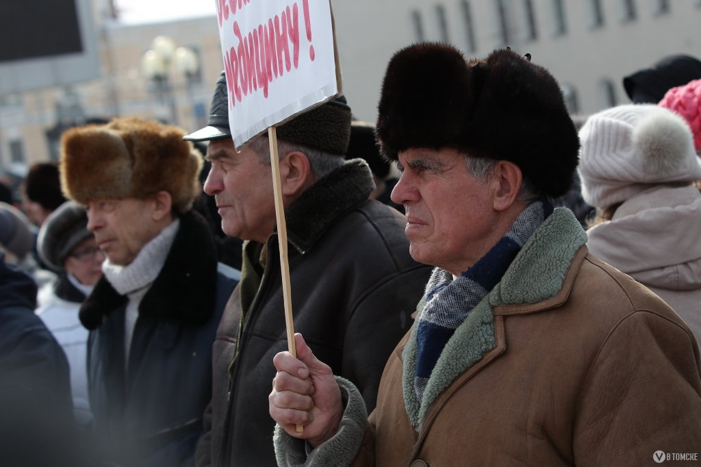 На месте митинга состав протестующих качественно меняется. Из молодежи остаются только самые активные, среди которых молодая коммунистическая поросль, а также звезды Тяжкун и Шарыпов. На место остальных встает старая гвардия. Выступает она как обычно: против богатых и за бедных, за много всего и бесплатно. Больше работать не пропагандируется. Критикуют в основном власть федеральную. Немного местную — ну, например, за нежелание отбирать детсады у разных ведомств. При этом следует не забыть прогнуться перед губернатором. Пламенное обращение с Сергею Анатольевичу звучало настолько проникновенно, что собравшиеся поневоле стали озираться в поисках губернатора: не прячется ли он за спинами в последних рядах?
