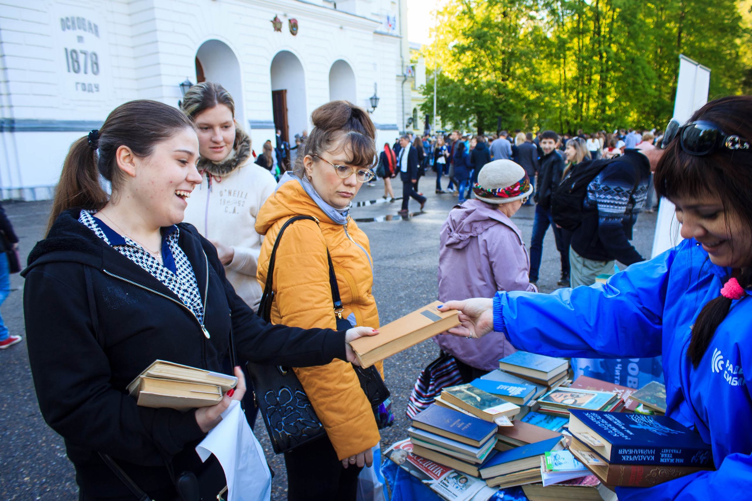 Добавим, на празднике был организован и традиционный томский книговорот от радио «Сибирь». В нем приняли участие техникумы, колледжи и школы города. Кроме того, горожане смогли посетить мастер-классы по прикладному творчеству и ярмарку, на которой продавались сладости и изделия томских мастеров, приобрести на память монету «ЯВТГУ».