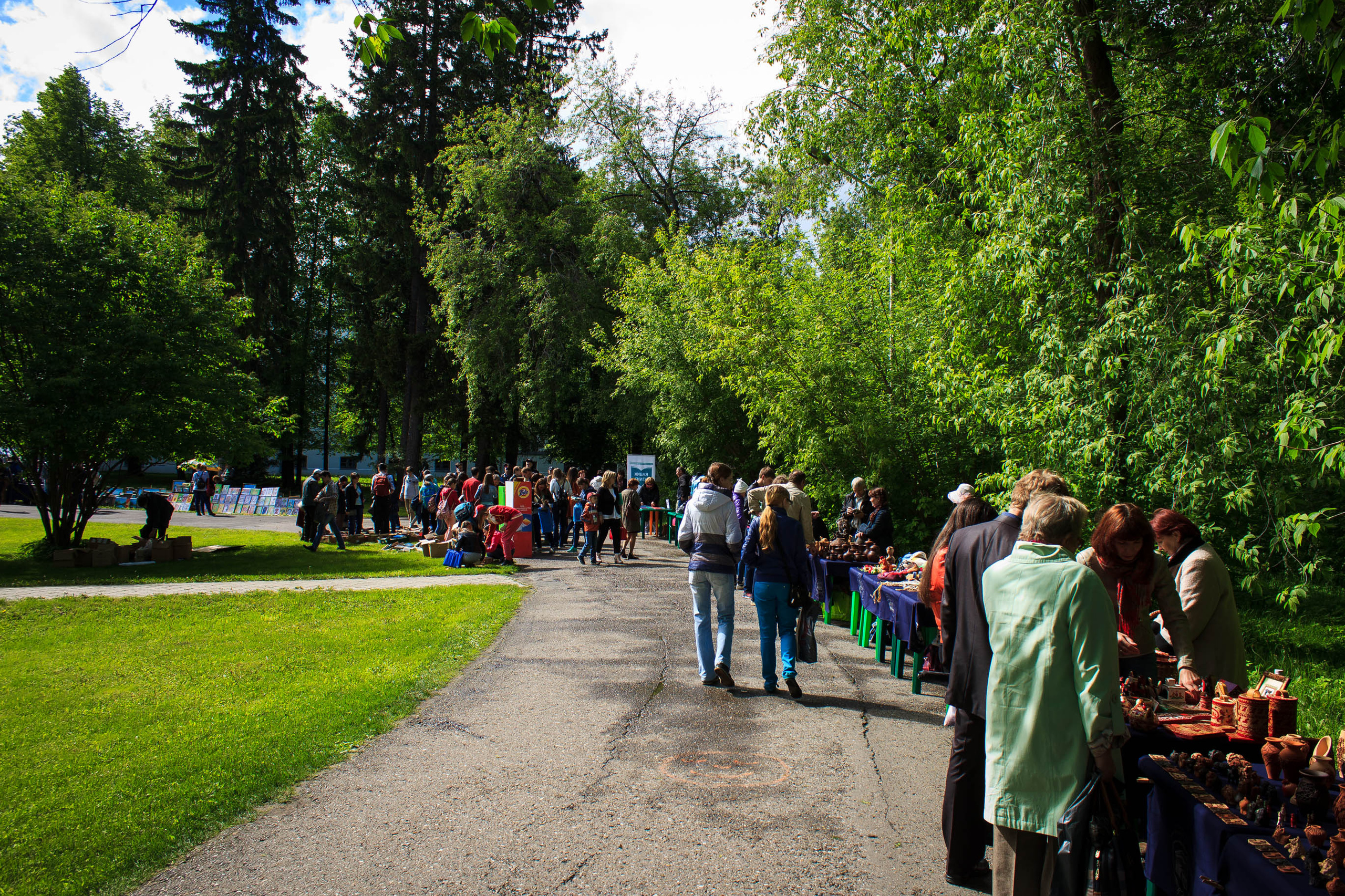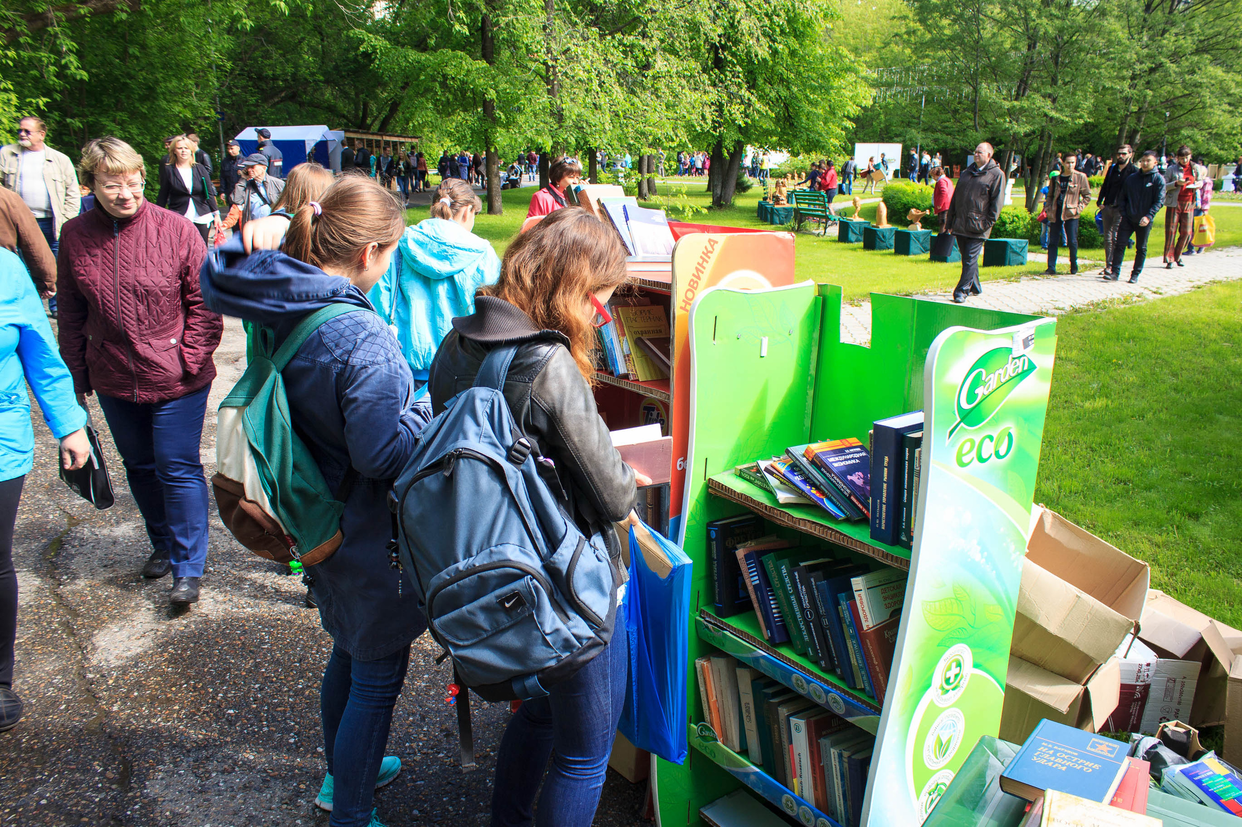 Так, в Университетской роще был организованы несколько тематических площадок. У главных ворот вуза работала площадка «Читающий-поющий Томск».