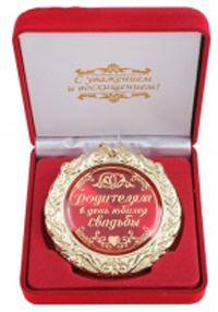 Кстати, не стоит забывать, что и родители тоже когда-то поженились. И для них у нас есть масса наградных подарков. В виде медалей, как минимум. Как вам надпись на памятной медали «Родителям в день свадьбы»? Вот и мы уверены, что такая вещь не может не понравиться!