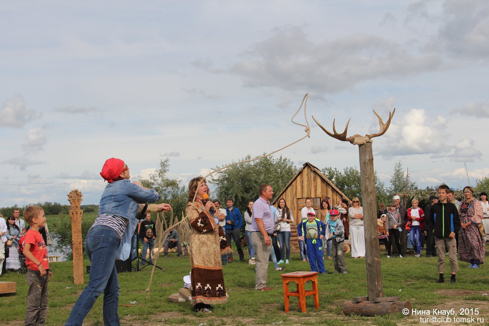 Дополнили «Этюды Севера-2015» показательные национальные состязания на театрализованной площадке этнической деревни — перетягивание бревна, набрасывание лассо на лосиные рога, стрельба по мишеням из лука и гонки на обласках.