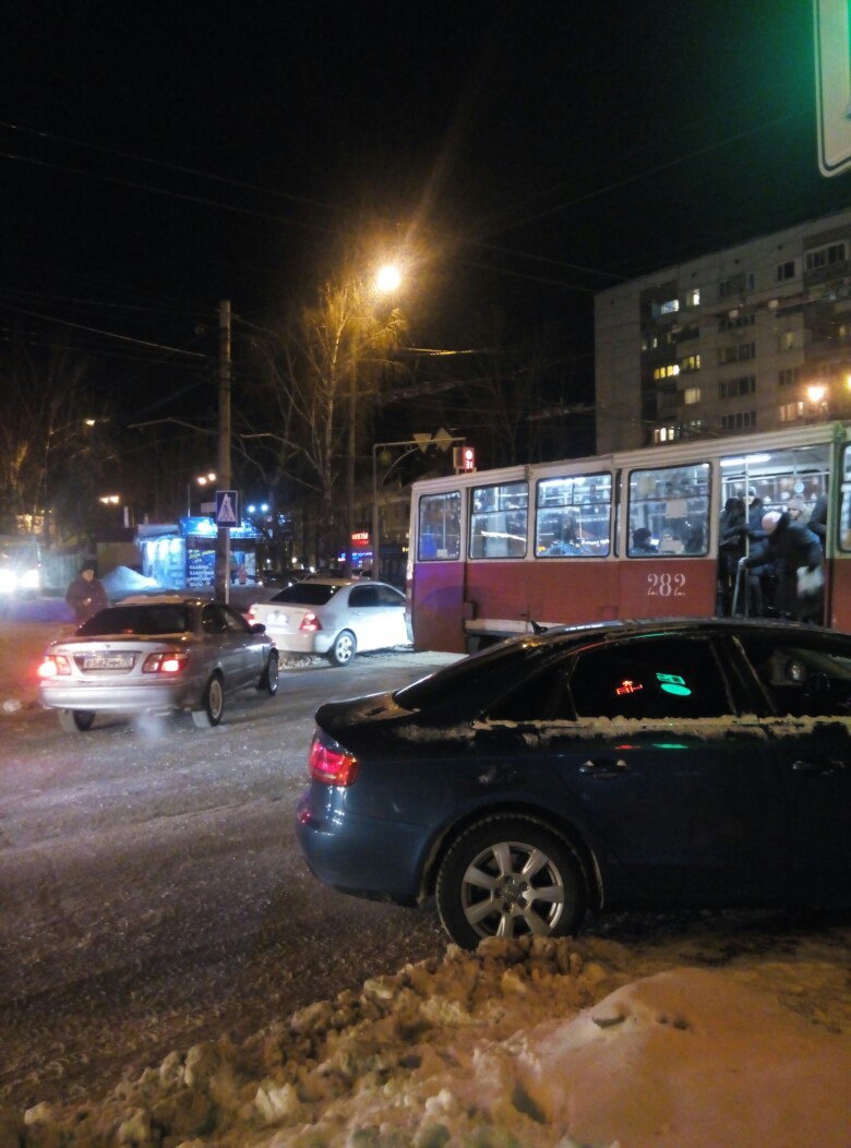 «Я в это время ехала в трамвае. Как вдруг водитель начала непрерывно сигналить идущему перед электротранспортом парню, но он не реагировал. В итоге водитель резко затормозила, пытаясь избежать наезда на пешехода, и трамвай сошел с рельсов. Никто в салоне не пострадал, как и пешеход. Оказалось, что молодой человек шел в наушниках и, видимо, не заметил приближающего транспорта. В итоге из-за сошедшего с рельсов трамвая на перекрестке образовалась большая пробка, в которой мы стояли минут 20. Наконец к нам подъехал другой трамвай и толкнул наш, после чего мы продолжили движение. Хотелось бы напомнить людям о том, что нужно быть внимательными, переходя рельсы», — пишет наша читательница.