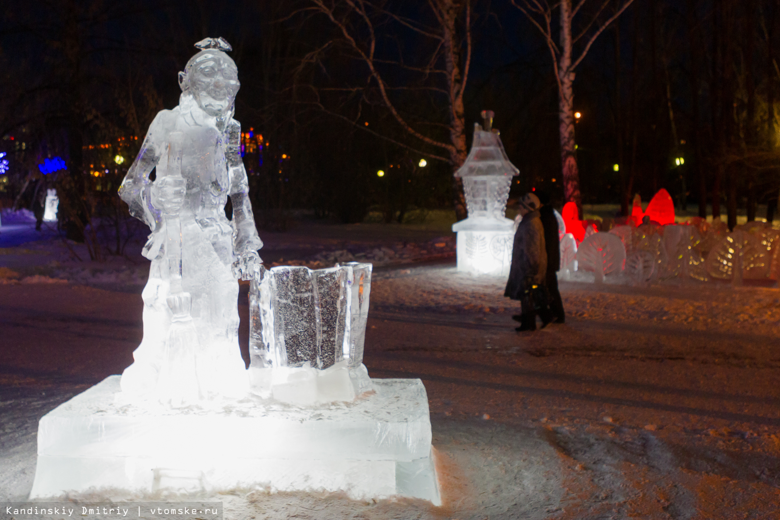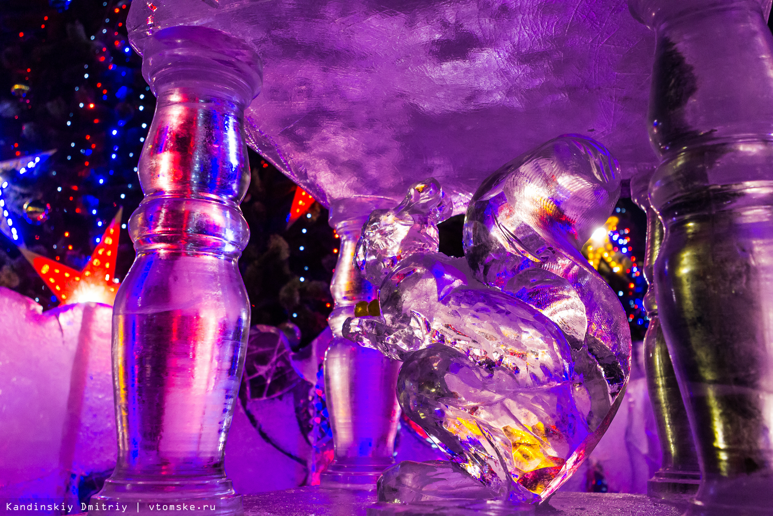 Отметим, что также сегодня на Новособорной заработали два ледовых катка, ледовые горки. На площади томичи могут увидеть вырезанные изо льда разные фигуры, созданные по мотивам сказок Александра Пушкина.