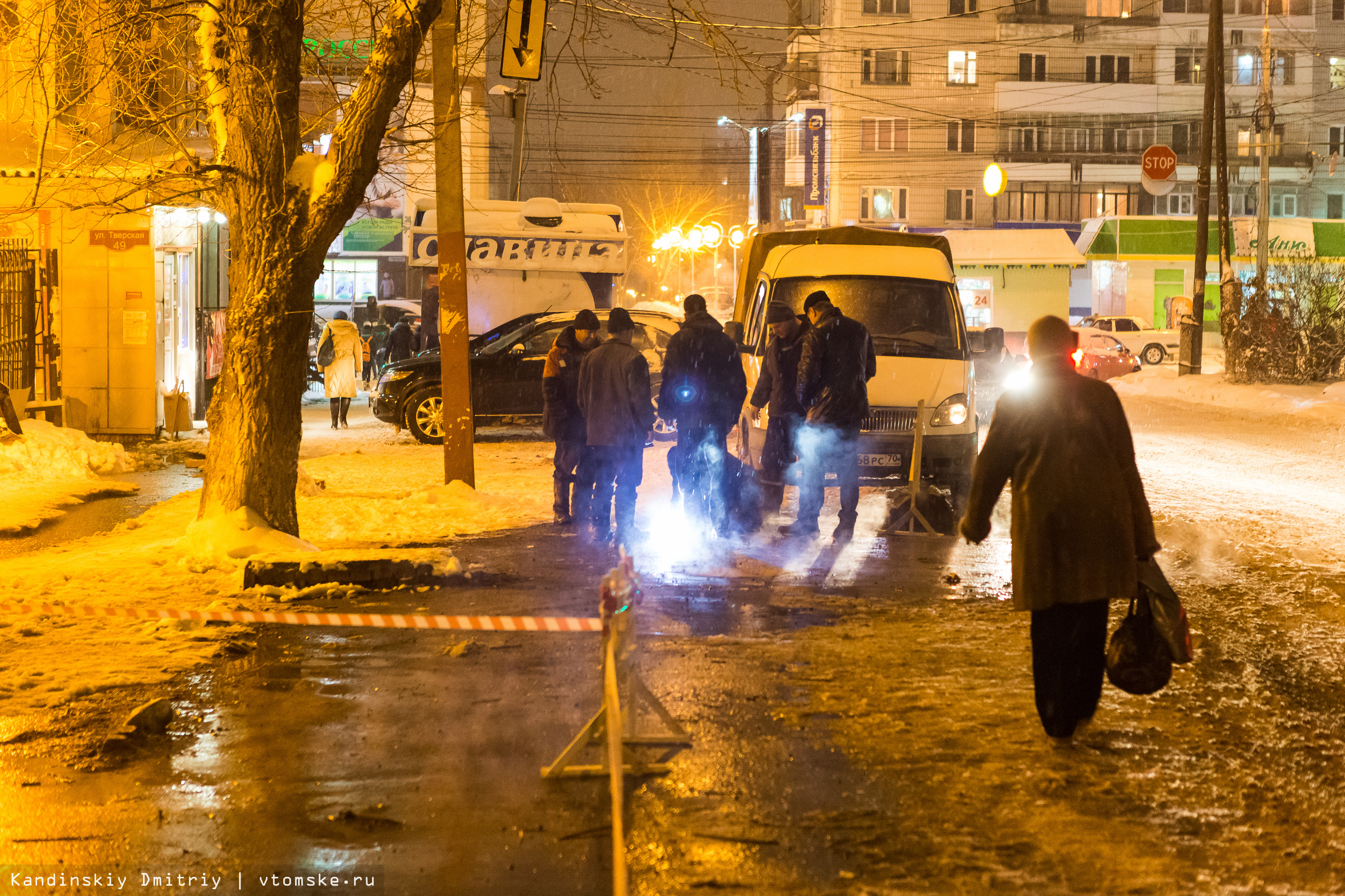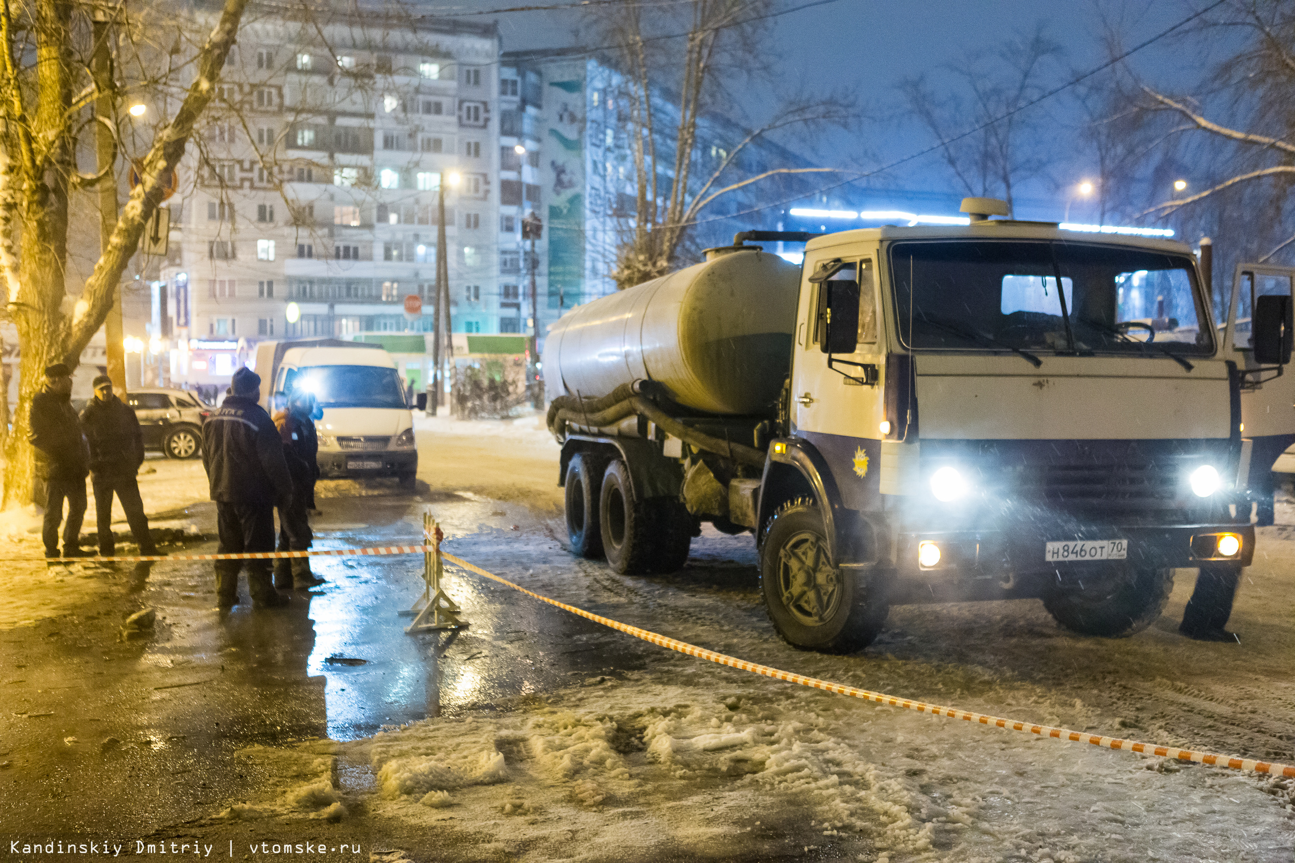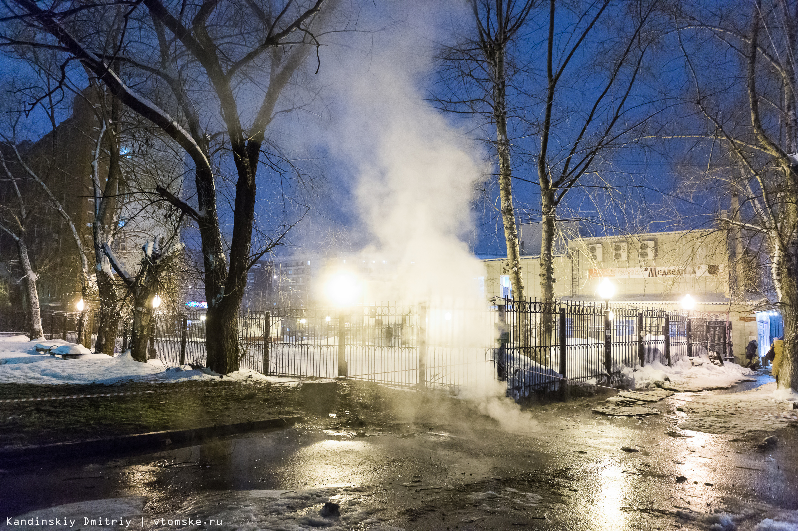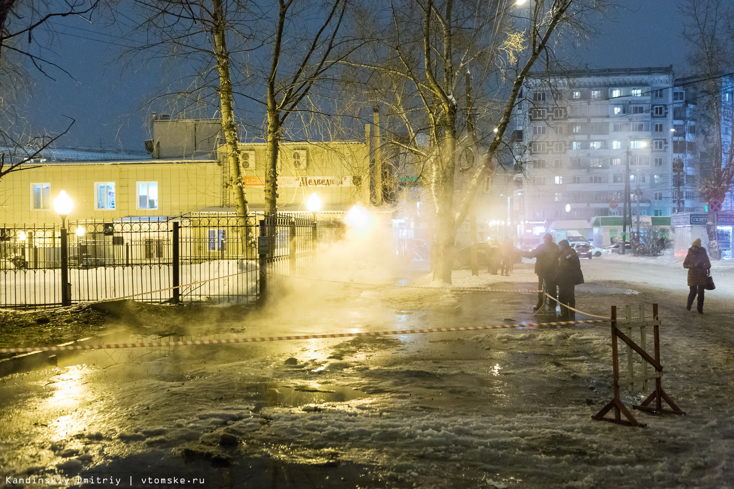 Из-за порыва теплосетей в центре Томска пять домов остались без горячей воды и отопления (фото, видео)