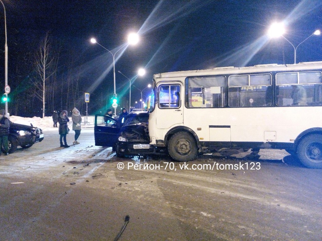 Вчера в 20:25 в Северске на пересечении улиц Славского и Ленинградской произошло столкновение иномарки и маршрутки № 405. По предварительной информации, 56-летний водитель ПАЗа, поворачивая налево, не предоставил преимущество в движении встречному Volkswagen Golf.