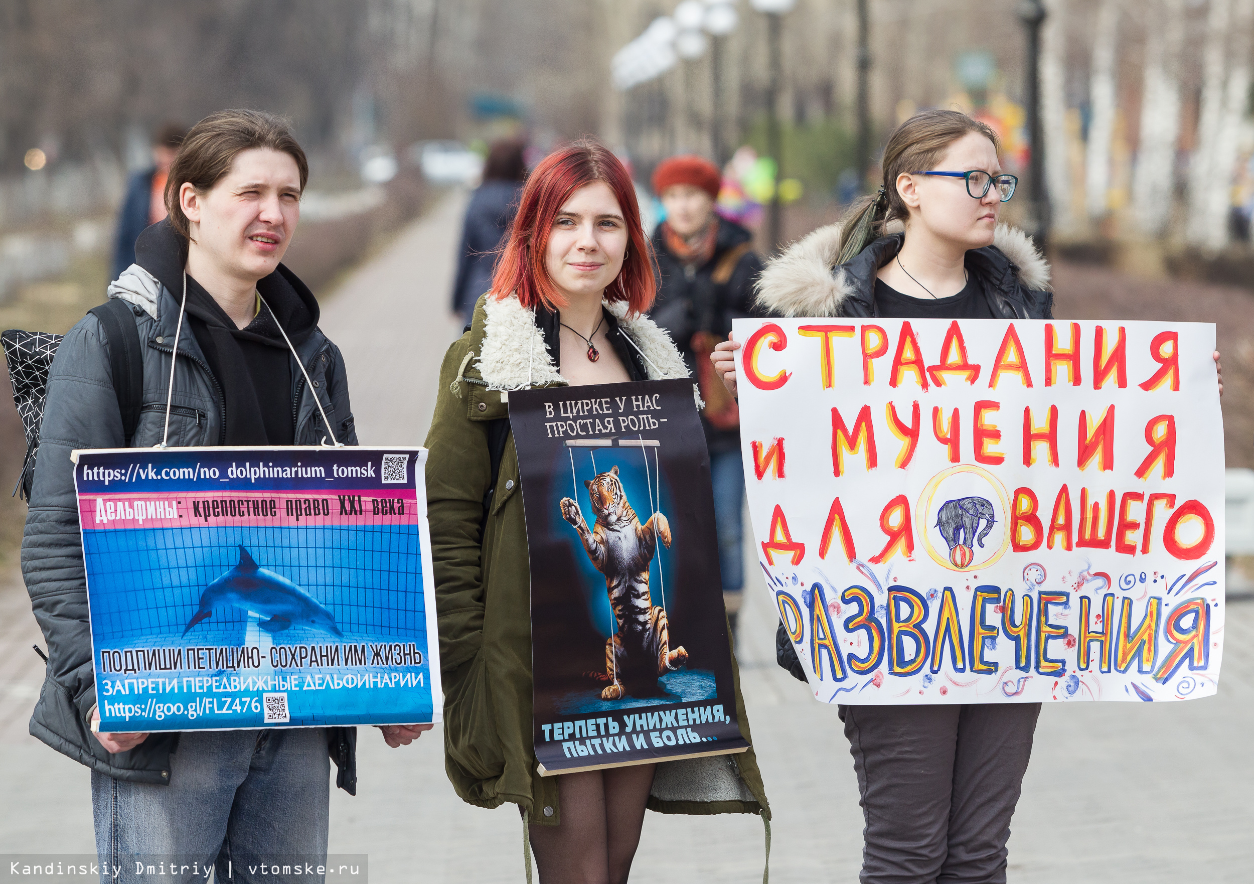 В воскресенье, 17 апреля, в 11 странах и 107 российских городах, в том числе в Томске, прошла международная акция «За цирк без жестокости — За цирк без животных». По мнению активистов, цирки с животными — это «примитивное, отсталое и запредельно жестокое развлечение недостойно существования в ХХI веке». Зоозащитники подчеркивают, что «гуманной дрессуры не бывает».