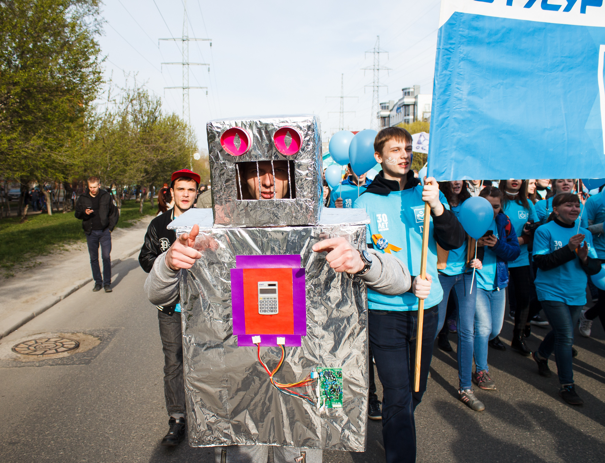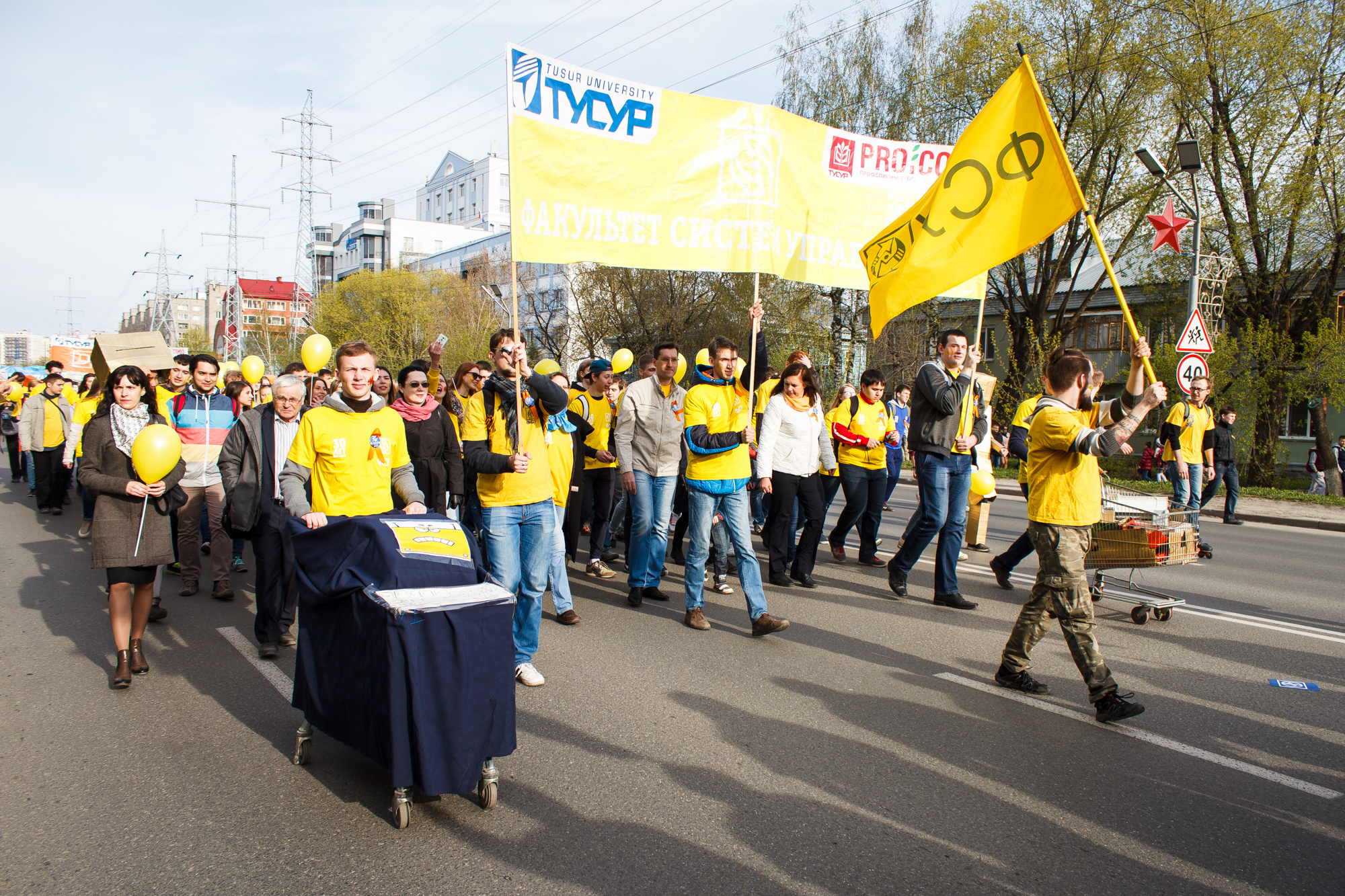Темой юбилейного шествия стал прогресс, развитие техники, поэтому представители факультеты шли с плакатами и в костюмах на эту тему. Торжественное шествие вновь прошло по измененному маршруту. Вместо проспекта Ленина студенты, педагоги и выпускники ТУСУРа прошлись по улицам Лыткина, Нахимова, Советской, Учебной, Вершинина. Завершилось шествие в студгородке на Лыткина, где прошло традиционное вбрасывание старой техники из окон общежития № 6 ТУСУРа. В этом году его организаторы намереваются попасть в Книгу рекордов Гиннеса — всего было выброшено около 700 единиц старой техники.