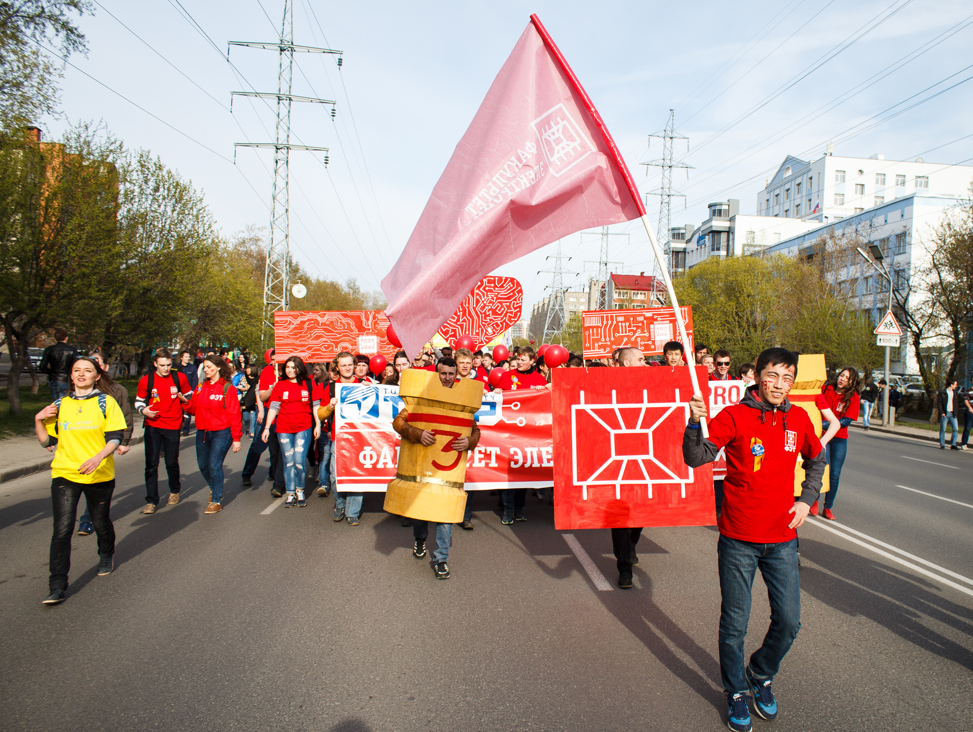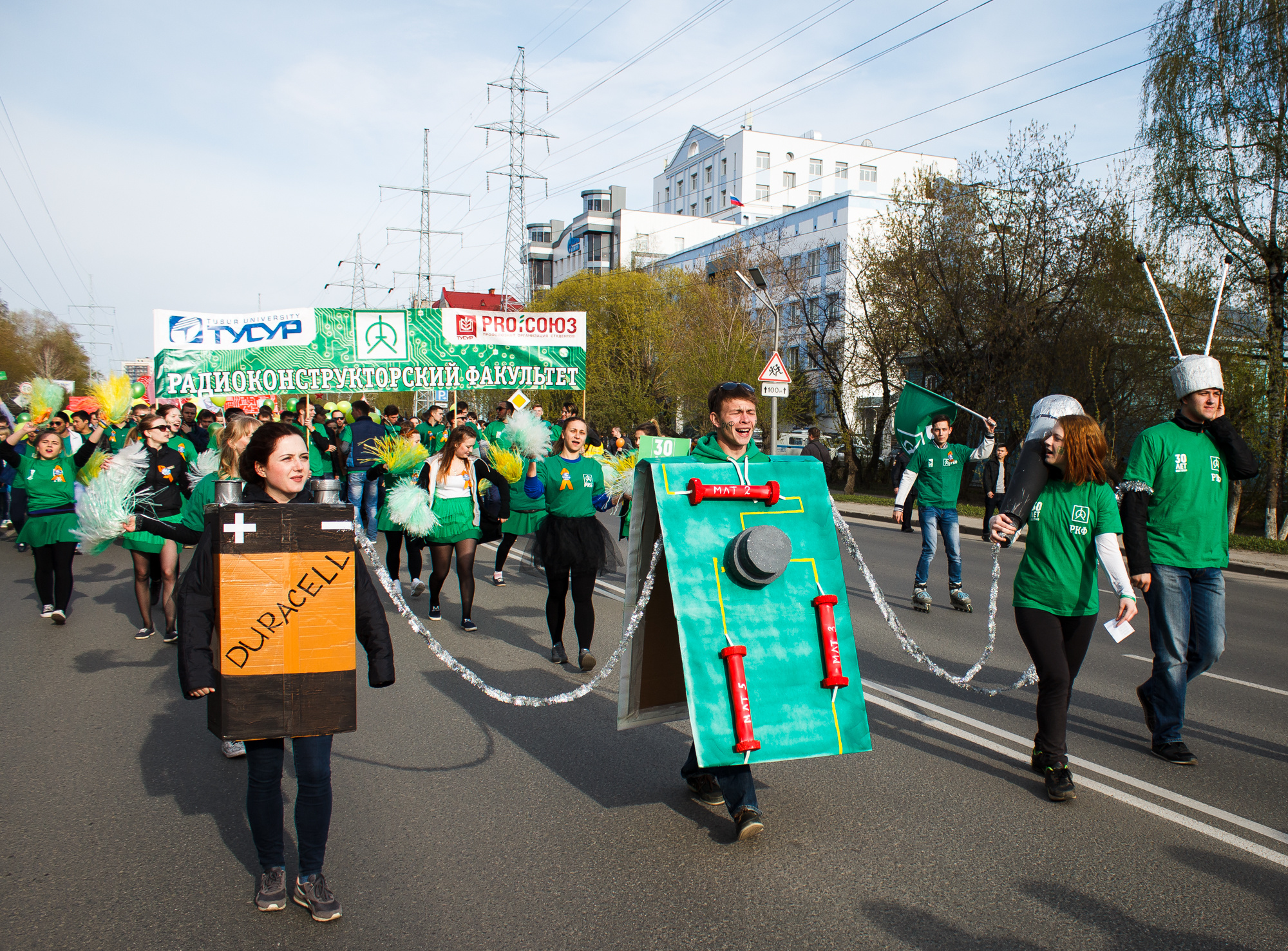 В этом году шествию студентов ТУСУРа, с которого началось празднование Дня радио в Томске, исполнилось 30 лет. В связи с этим движение праздничных колонн, которое стартовало от общежития на Лыткина, 8, открывали участники самого первого шествия. Далее с импровизированными факелами прошли студенты радиотехнического факультета ТУСУРа. За ними проследовали остальные факультеты вуза.