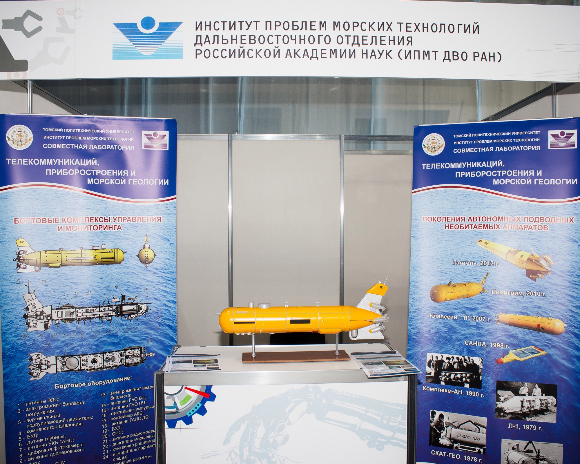 Дальневосточный институт проблем морских технологий РАН совместно с ТПУ представил бортовые комплексы управления и мониторинга, в частности, электромагнитный искатель, гидроакустические маяки-ответчики.