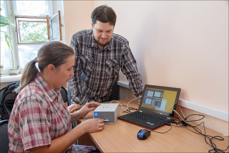«Вы погружаете оптод в воду, затем загружаете его в прибор-анализатор. Там специальное электронное устройство принимает оптический сигнал и преобразует его в электрический трехканальный RGB-сигнал. После обработки этого сигнала устройство выдает в цифровом виде данные о концентрации необходимого вещества. Сам анализ происходит практически мгновенно», — поясняет руководитель проекта.