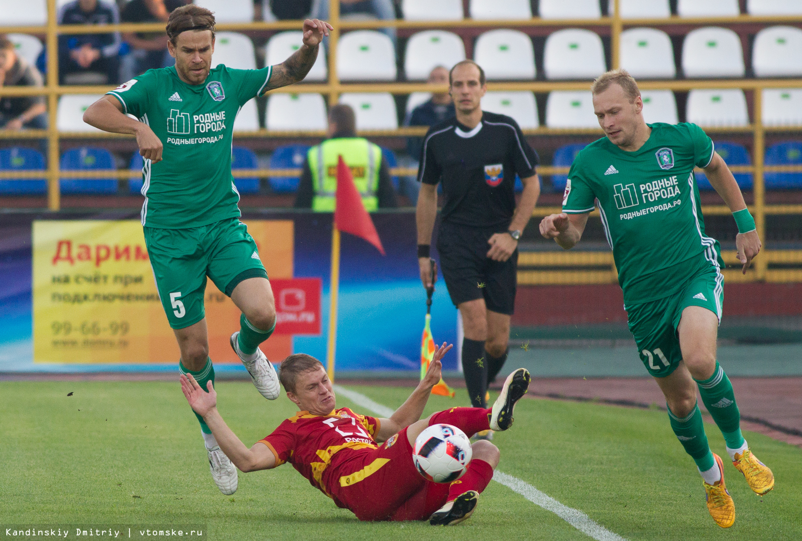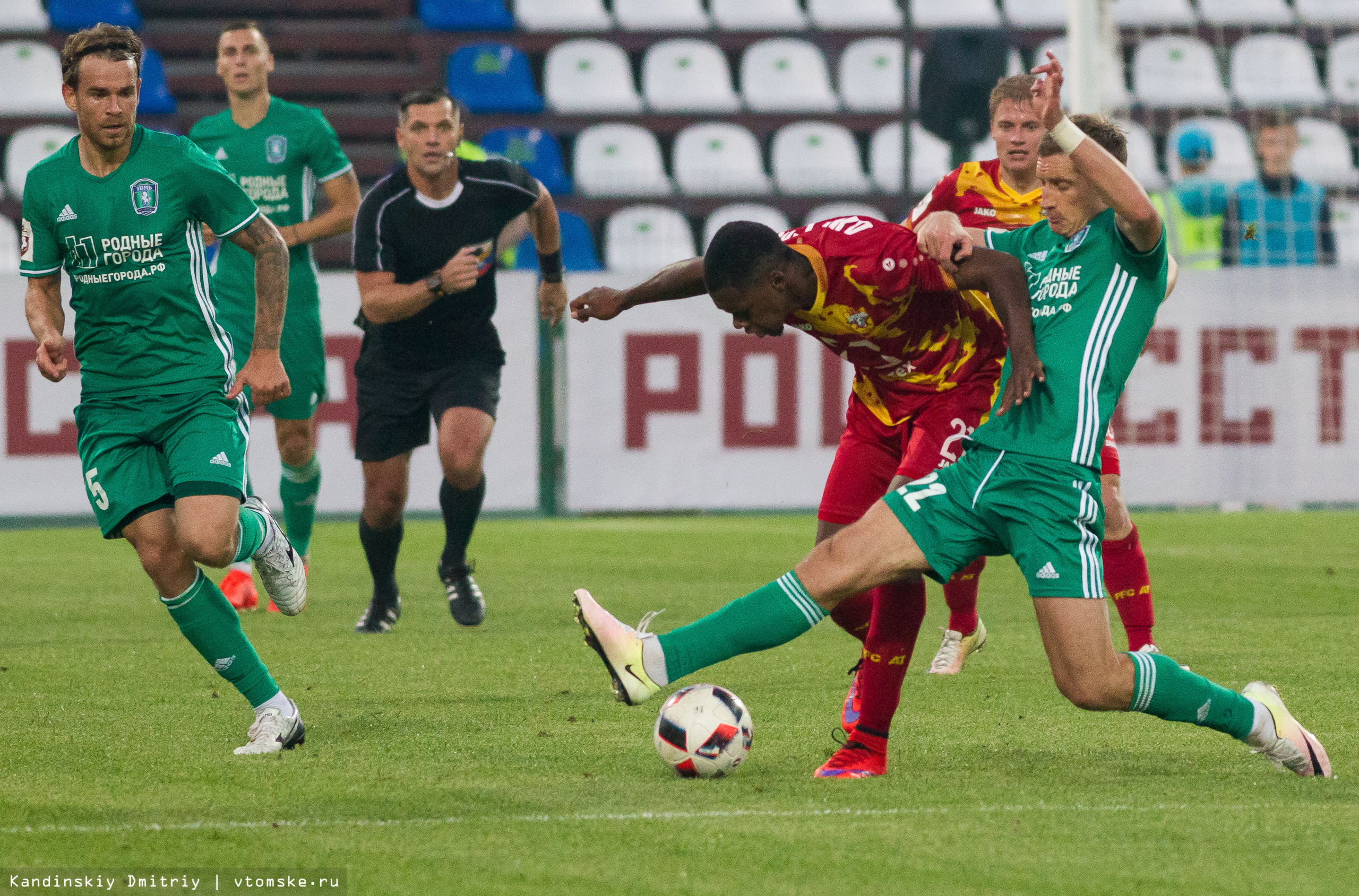Матч в рамках седьмого тура РФПЛ между «Томью» и тульским «Арсеналом» только что закончился на томском стадионе «Труд» со счетом 1:0 в пользу нашей команды.