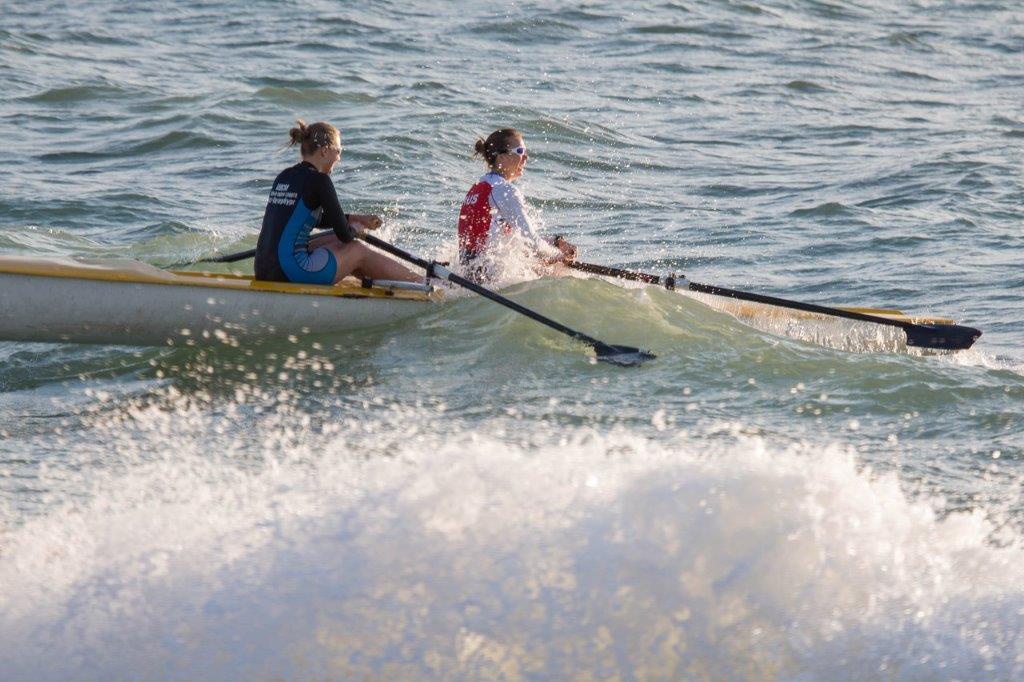 В отличие от академической гребли соревнования по прибрежной гребле могут стартовать с любого места в акватории, а лодки могут выходить на воду без помощи специальных держателей и наличия стартовых плотов. В соревнованиях по прибрежной гребле победители также определяются по лучшему времени.