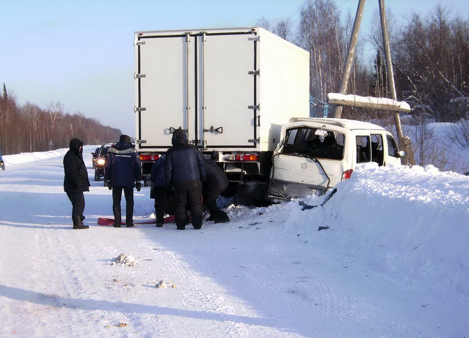 В результате столкновения КамАЗа и микроавтобуса Ssang Yong на трассе в Бакчарском районе пострадали пять пассажиров иномарки, в том числе семилетняя девочка, сообщается на сайте областного УГИБДД.
