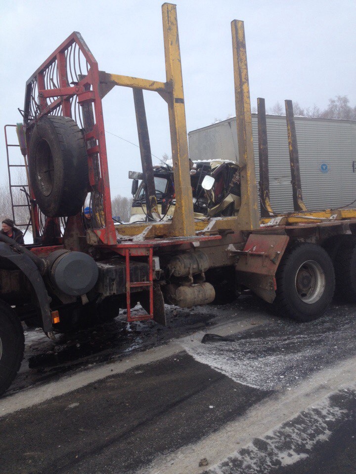 Пассажир получил травмы при столкновении двух грузовиков на томской трассе